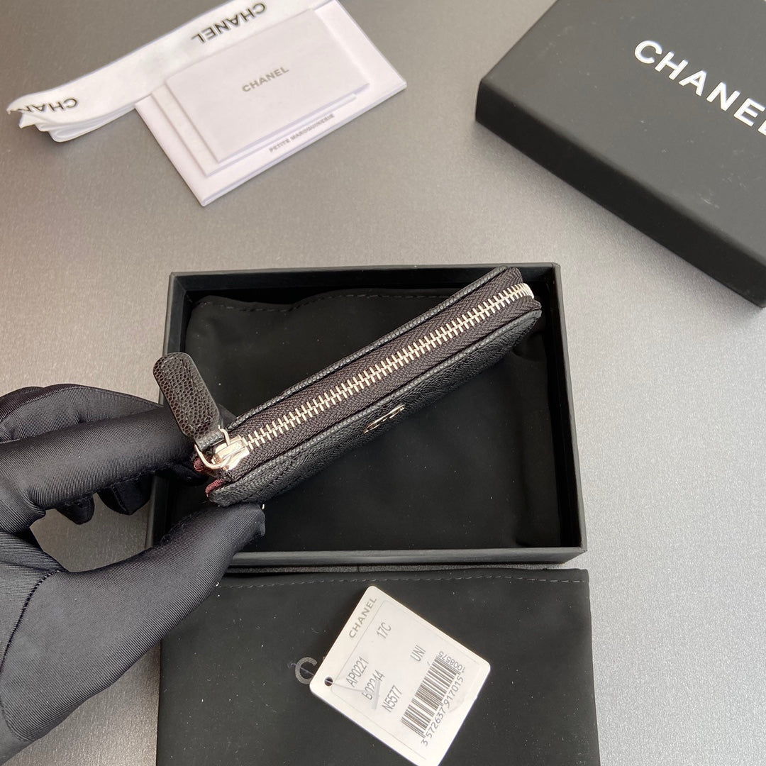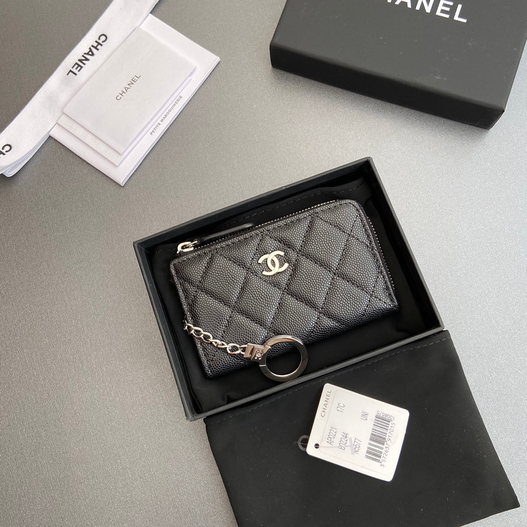 CC Hook & Chain Zipper Card Holder Black Caviar Sliver Steel 234731