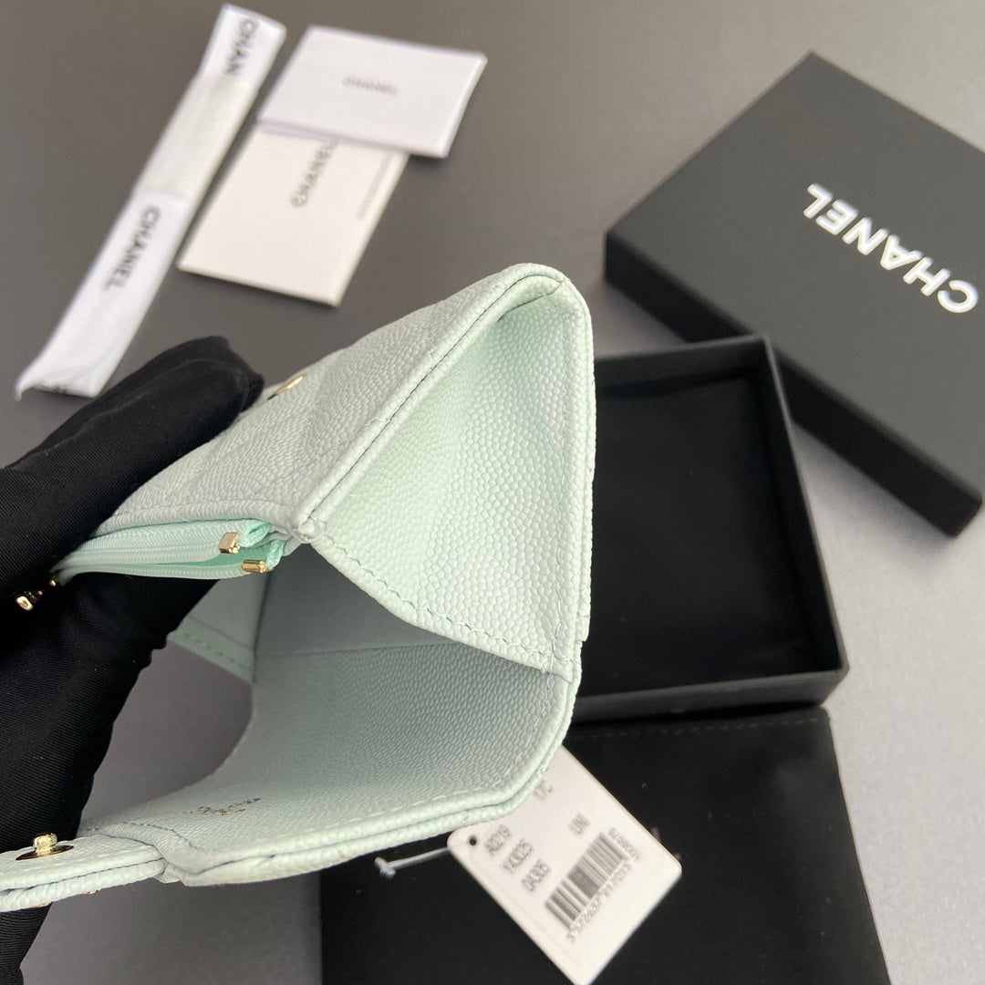 CC Zipper Flap Card Holder Light Blue Caviar GHW 234657