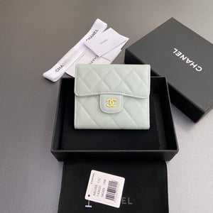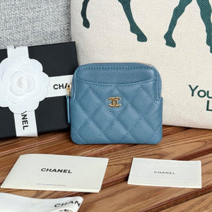 CC Zip Card Holder Wallet Light Blue Gold Metal Caviar 240605