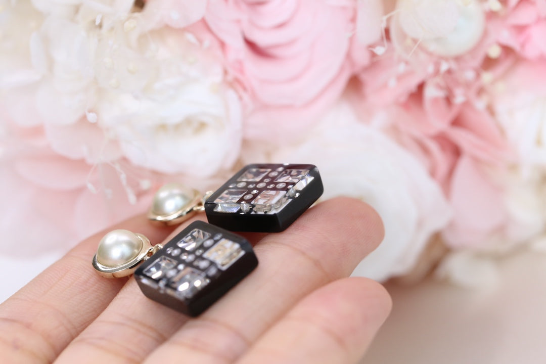 DOUBLE C PEARL GOLD DIAMOND EARRINGS