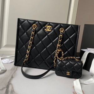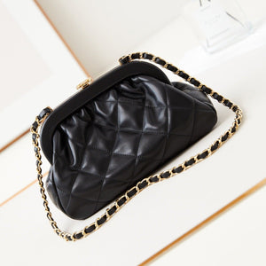 24a cc 22 hobo bag 20cm black lambskin pearl gold hardware
