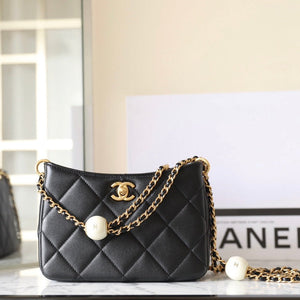 cc 24s hobo bag 19cm black lambskin pearl ball
