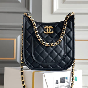 cc 24p hobo bag 28cm black lambskin gold hardware