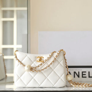 cc 24s hobo bag 19cm white lambskin pearl ball