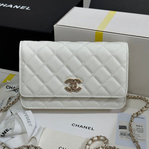 CC 25P Wallet Woc Handle 19cm White Leather Silver Hardware 243451