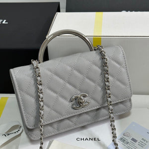 CC 25P Wallet Woc Handle 19cm Light Gray Leather Silver Hardware 243454