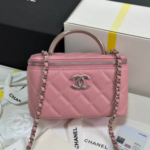 CC 25P Vanity Case 17cm Pink Pastel Leather Silver Hardware 243463