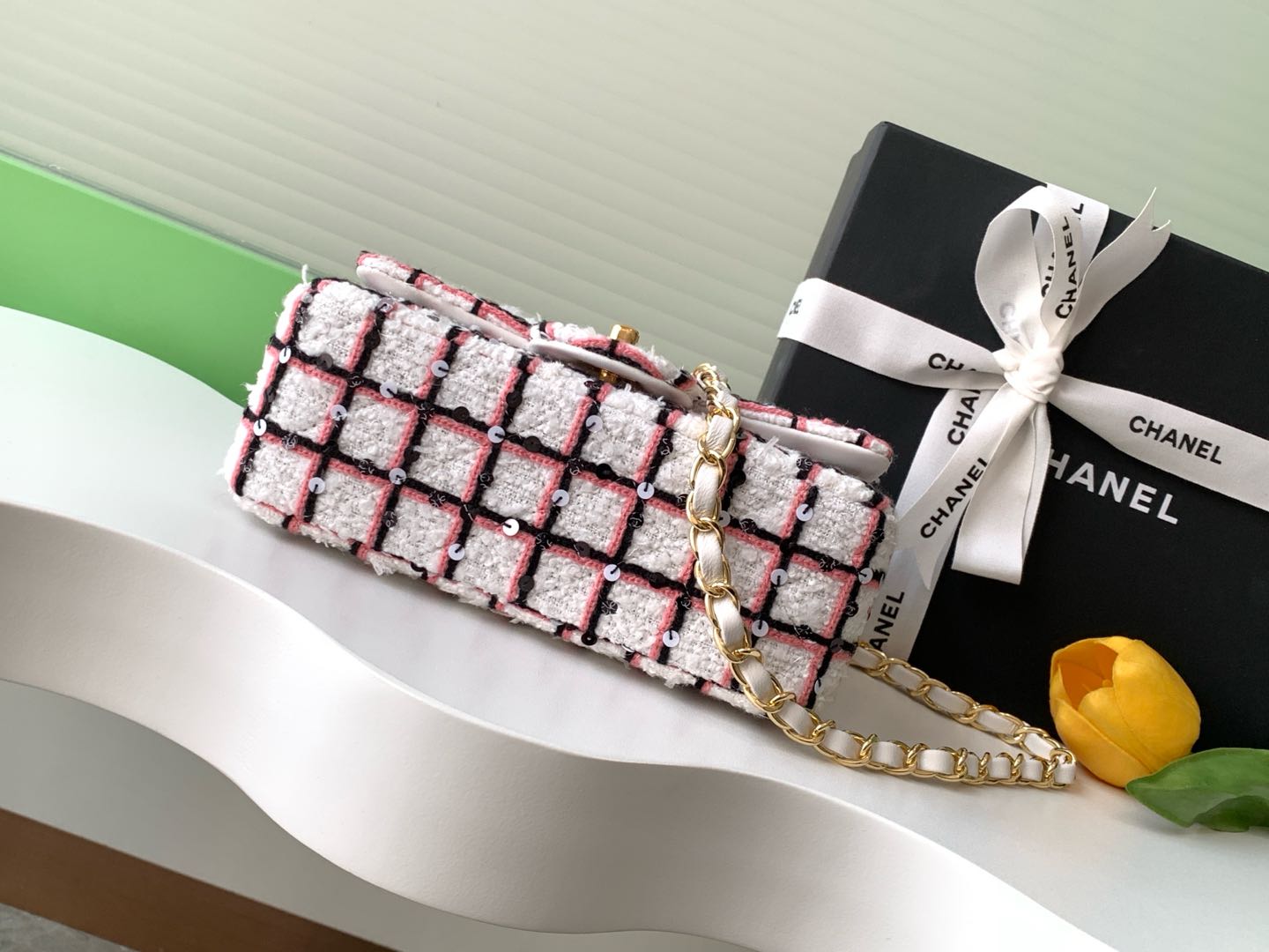CC 25C Pink White Black Tweed Gold Hardware