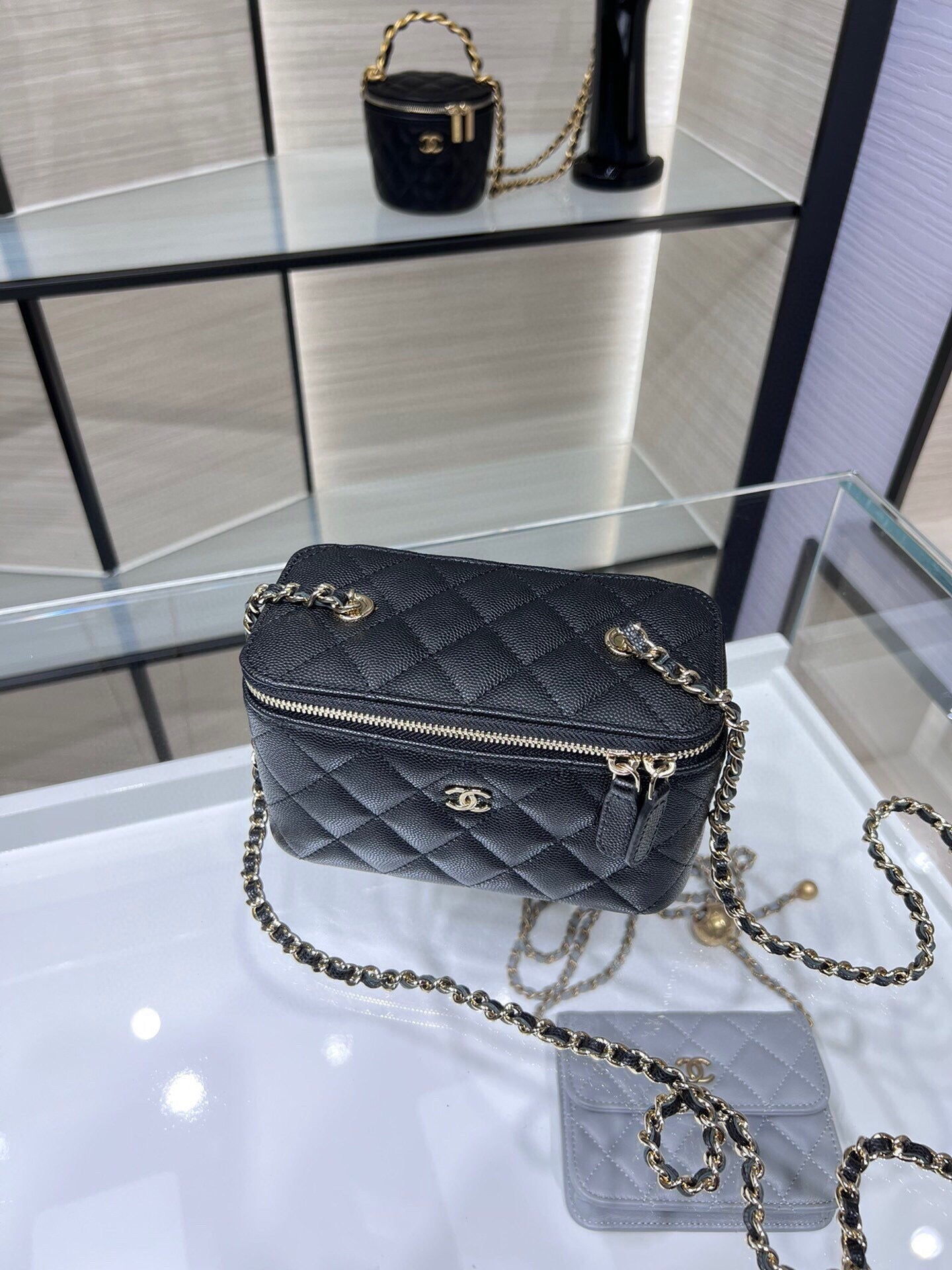CC 25C Vanity Case 16cm Black Caviar Leather Light Gold Hardware