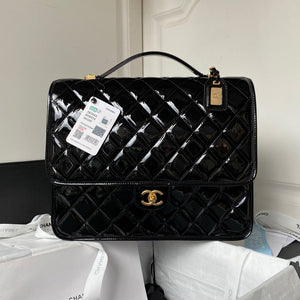 cc large backpack 31cm black patent calfskin gold hardware