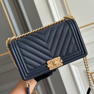 BOY BAG SMALL 20 BLACK CHEVRON CAVIAR GOLD HARDWARE