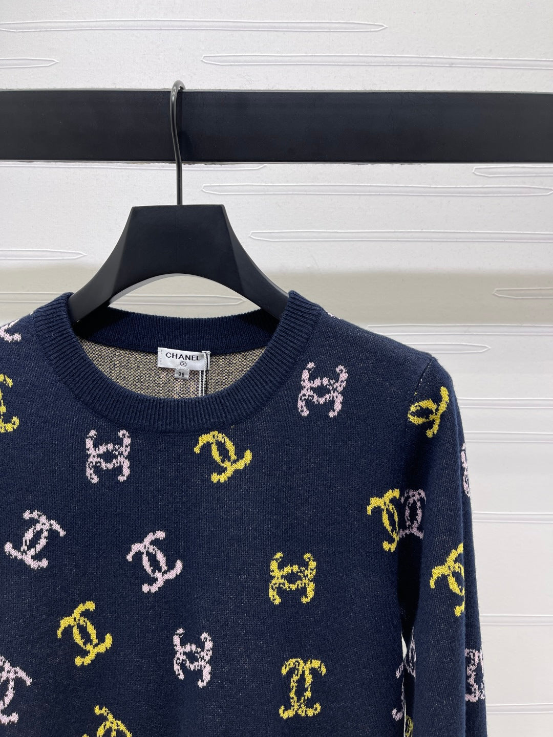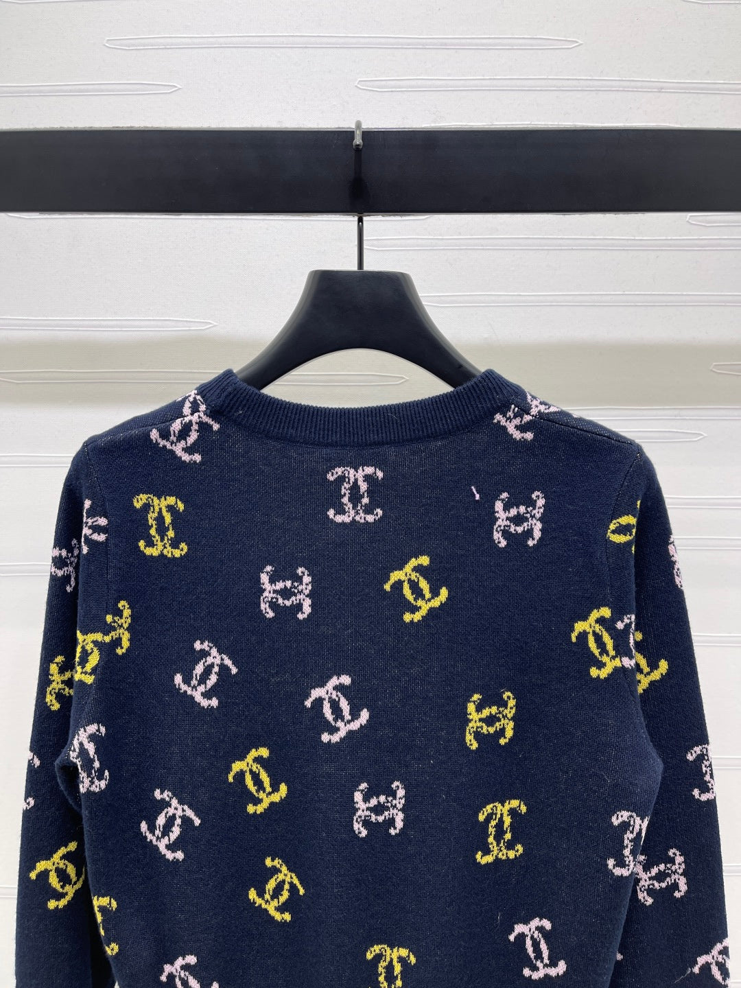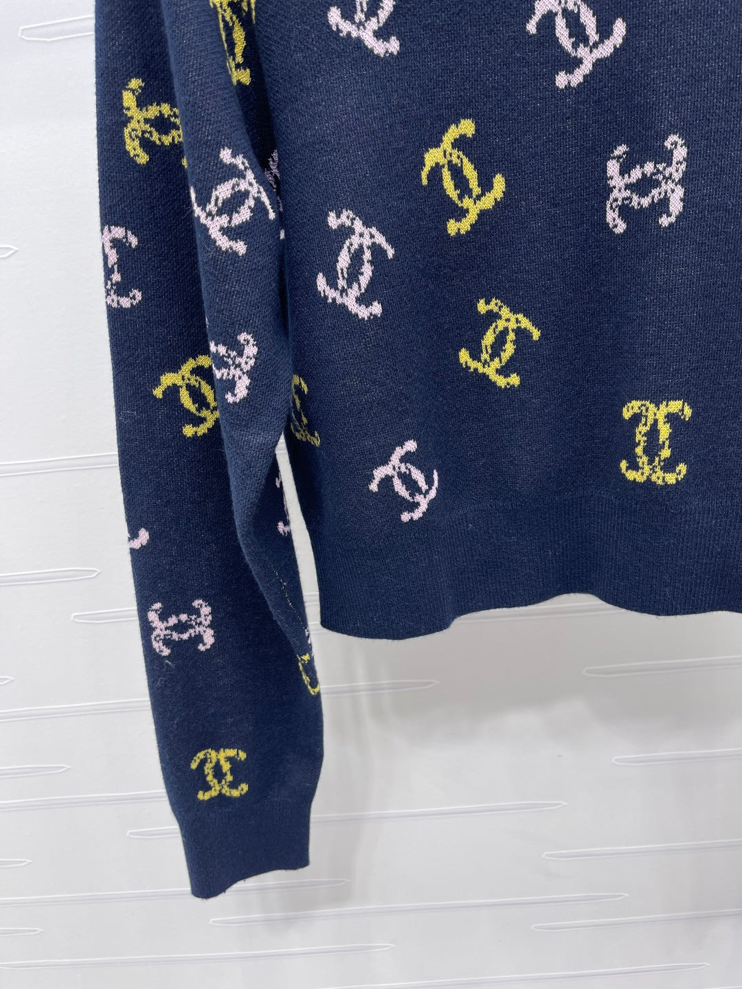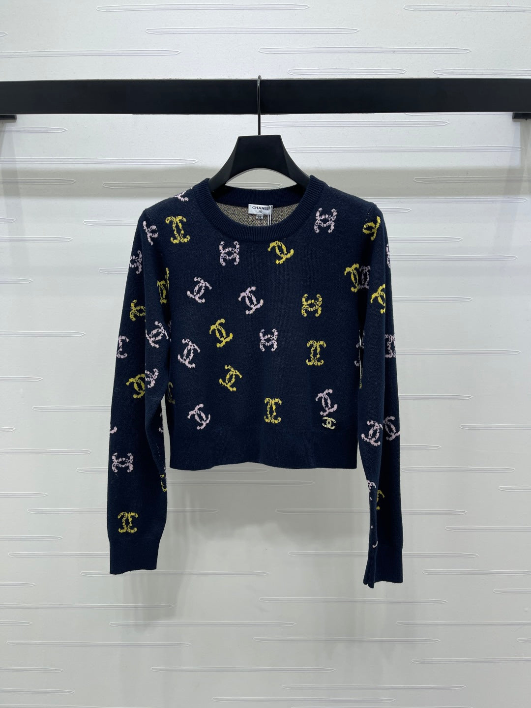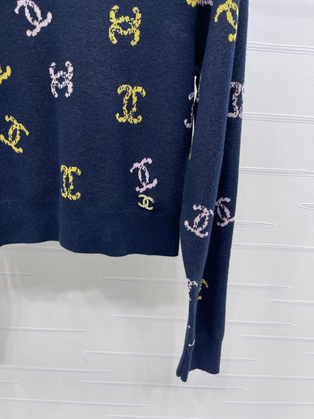 CC 25 Jacquard Long-Sleeved Pullover Sweater Black Wool