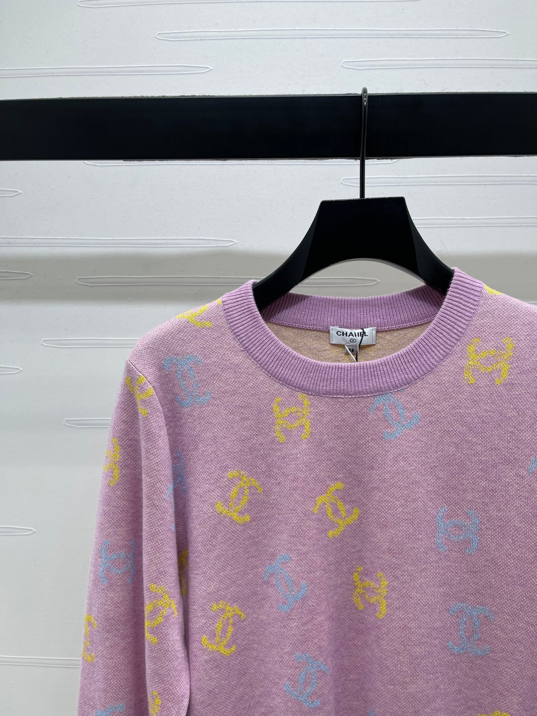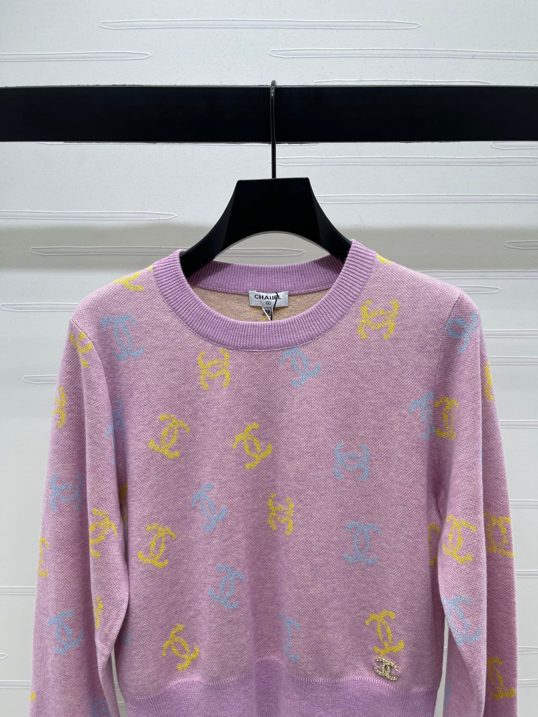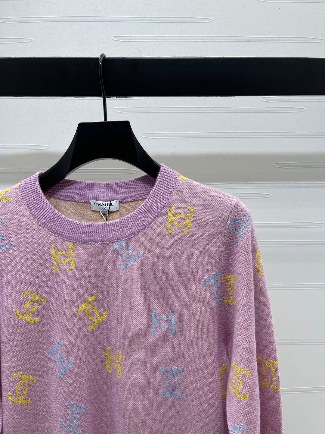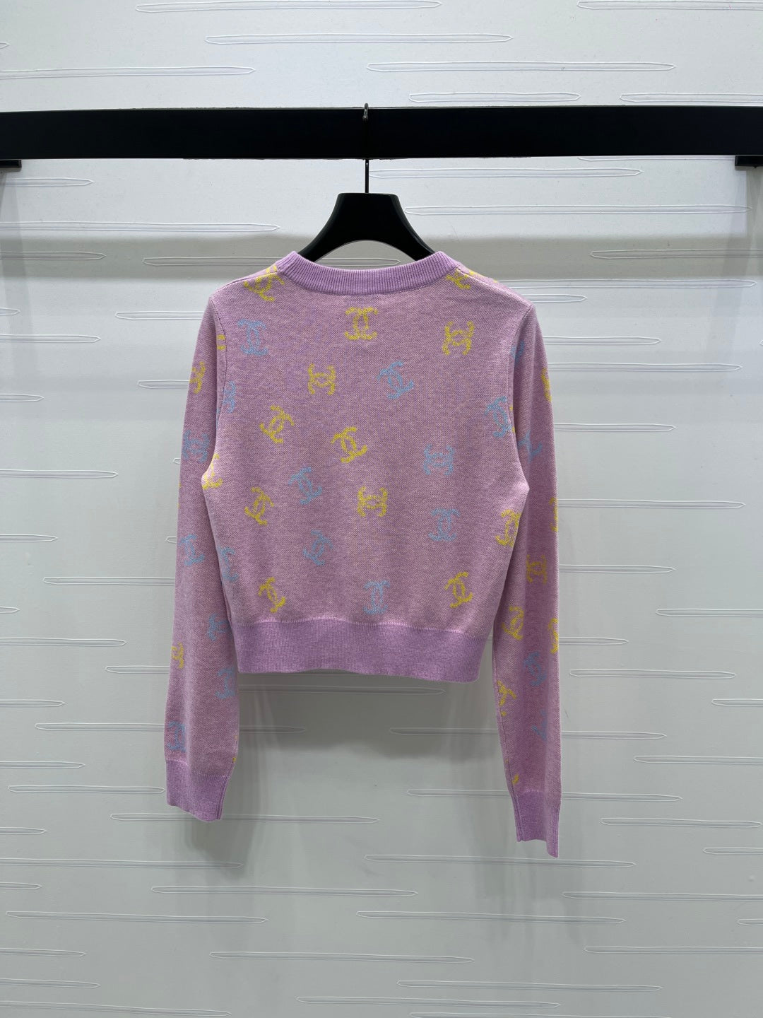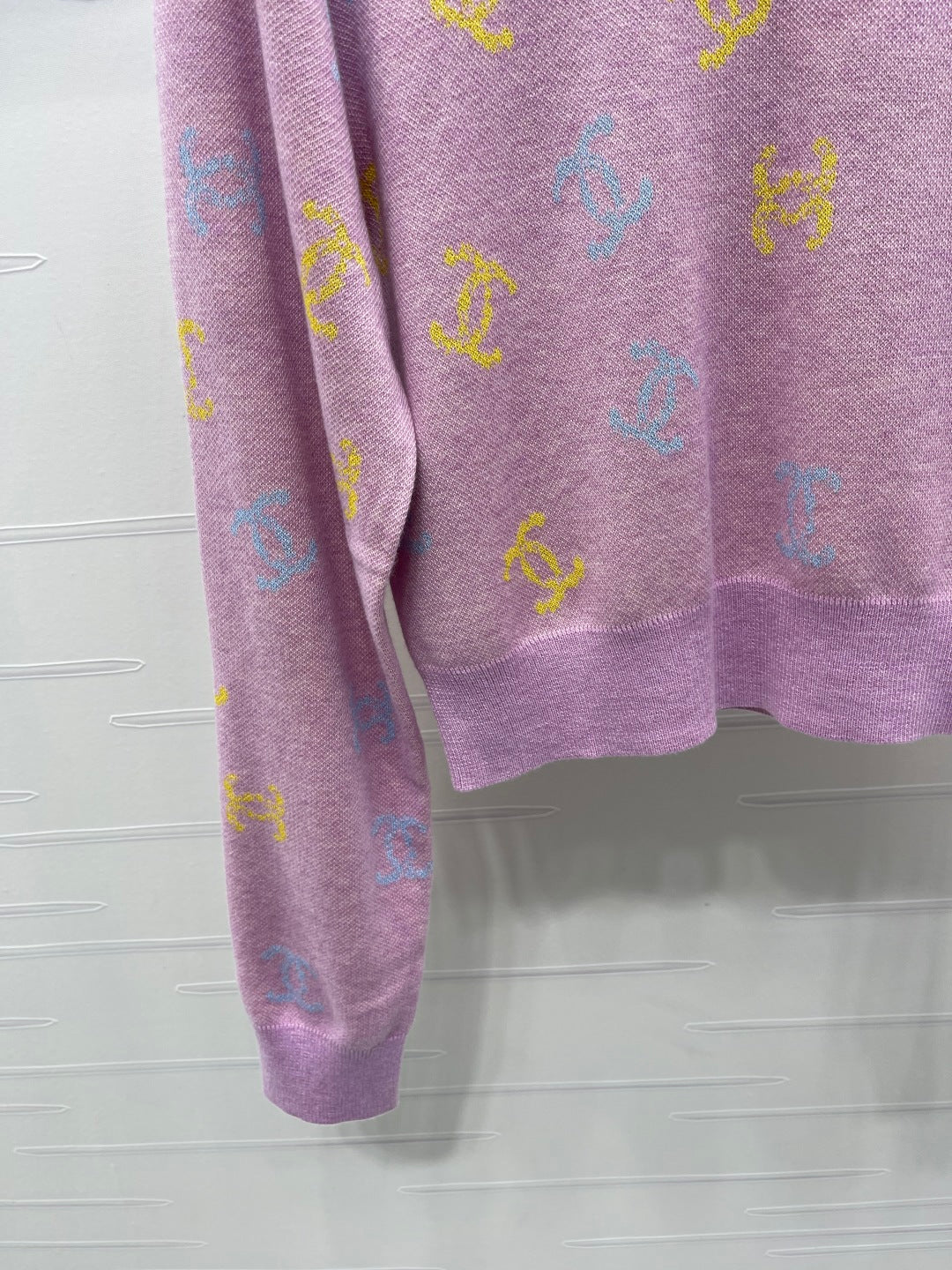 CC 25 Jacquard Long-Sleeved Pullover Sweater Pink Wool