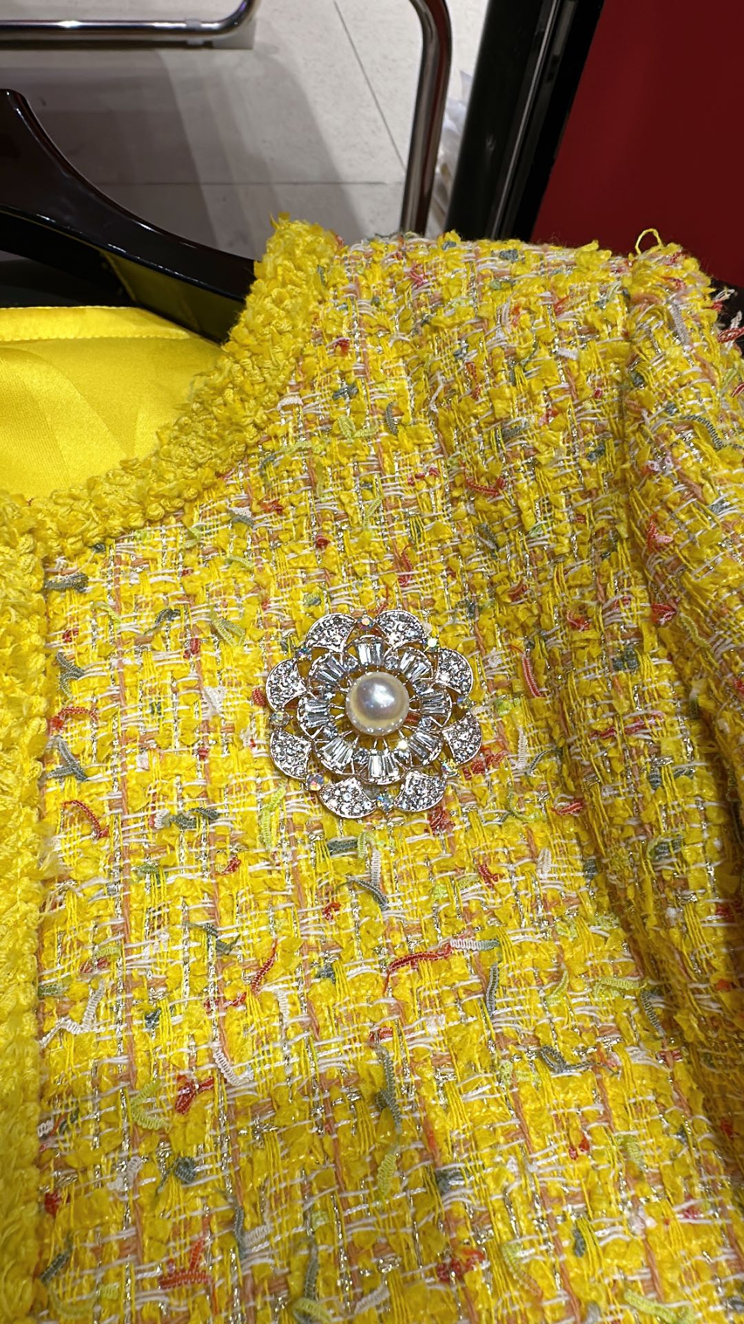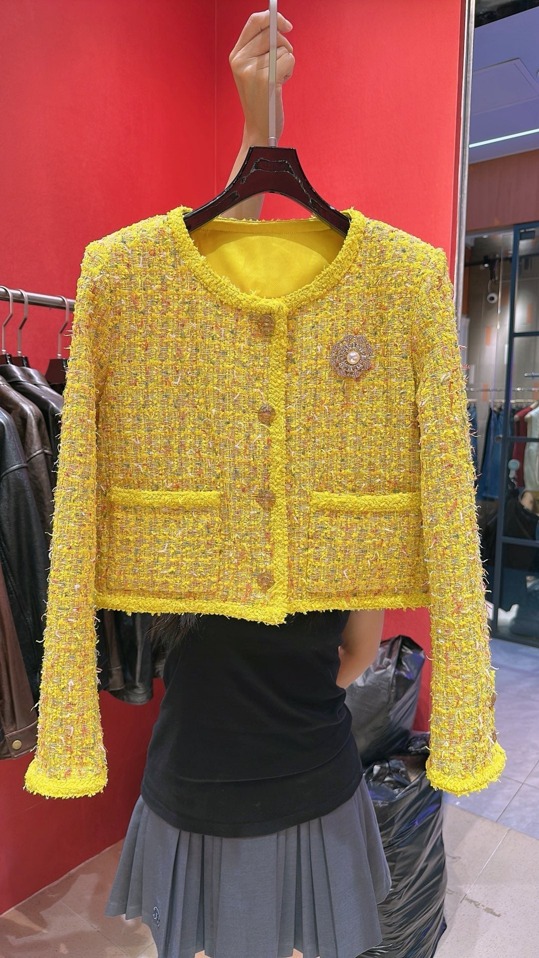 CC 25 Short Style Brooch Jacket Yellow Cotton