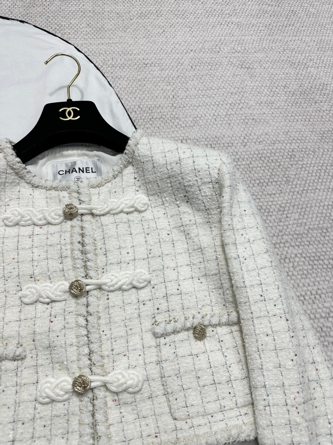 CC 25A Beaded Plaid Crop Tweed Jacket