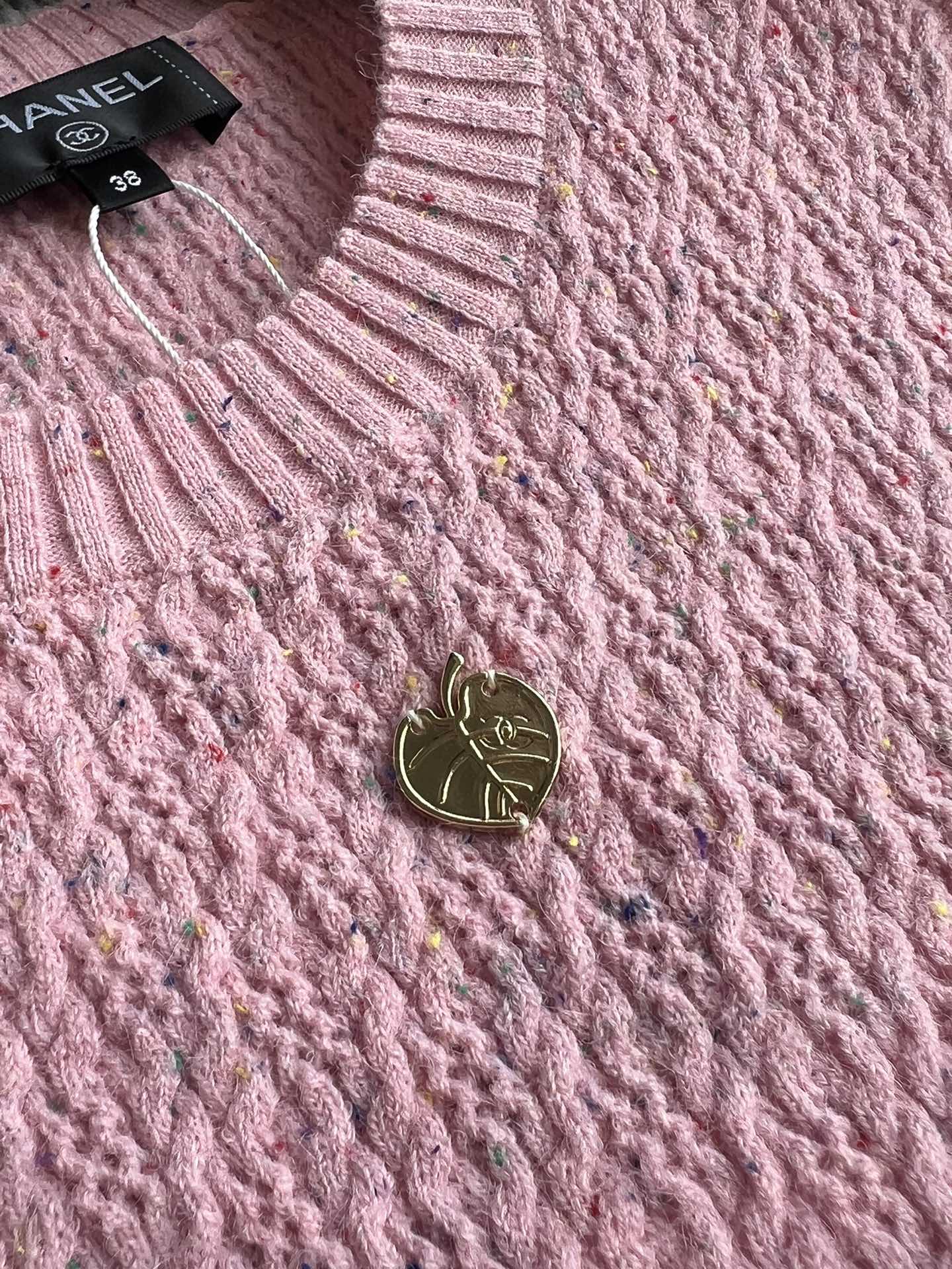 CC 25A Round Neck Sleeveless Vest In Pink Wool 269549