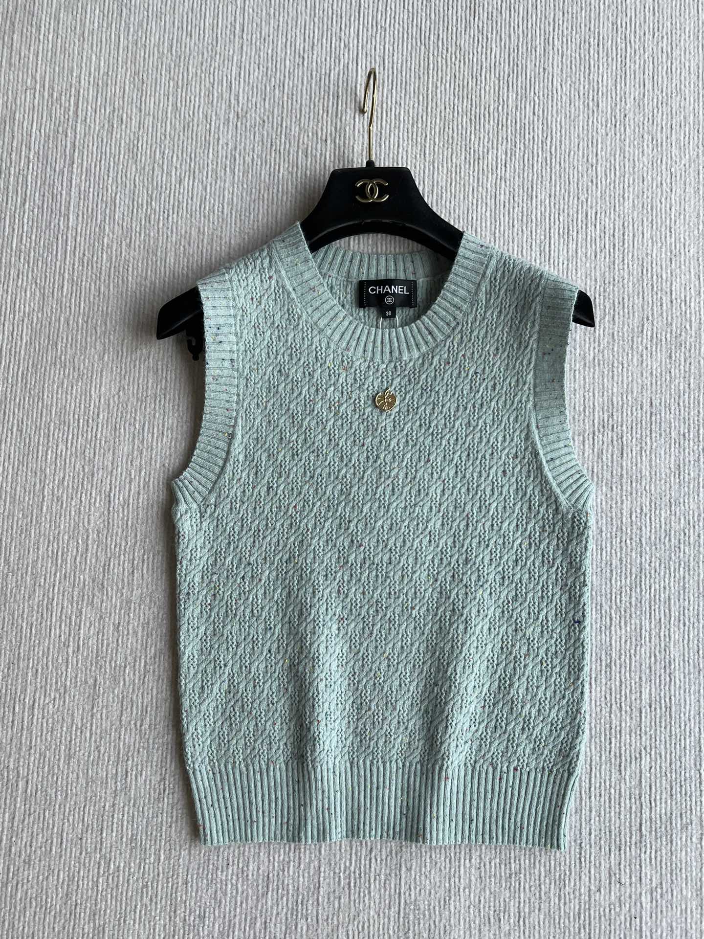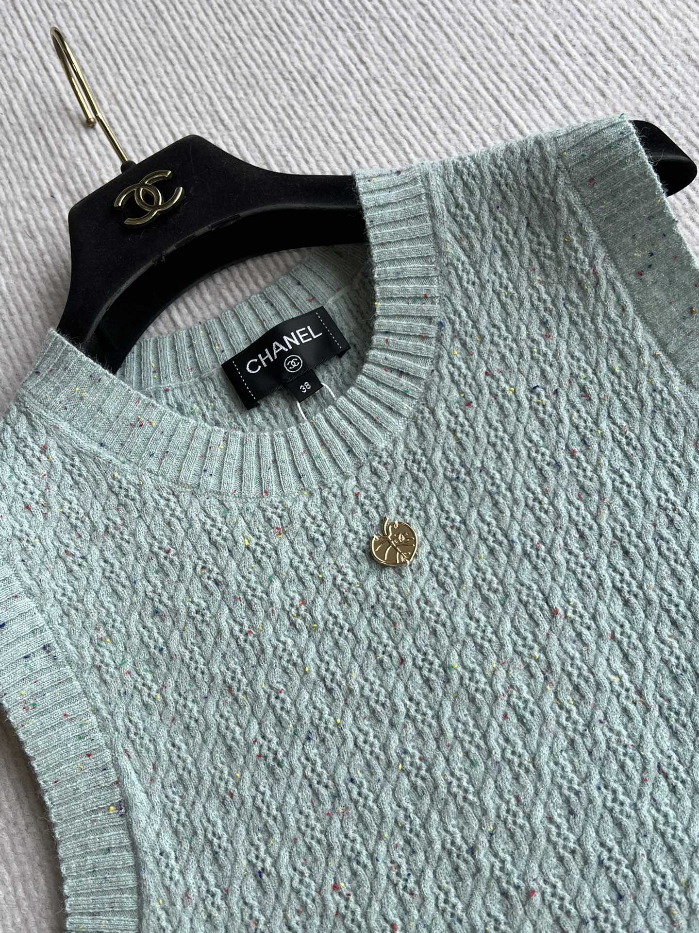 CC 25A Round Neck Sleeveless Vest In Turquoise Wool 269548
