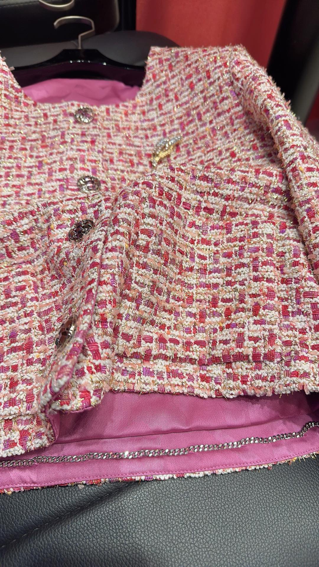 CC 25F Crew Neck Brooch Jacket Pink Cotton