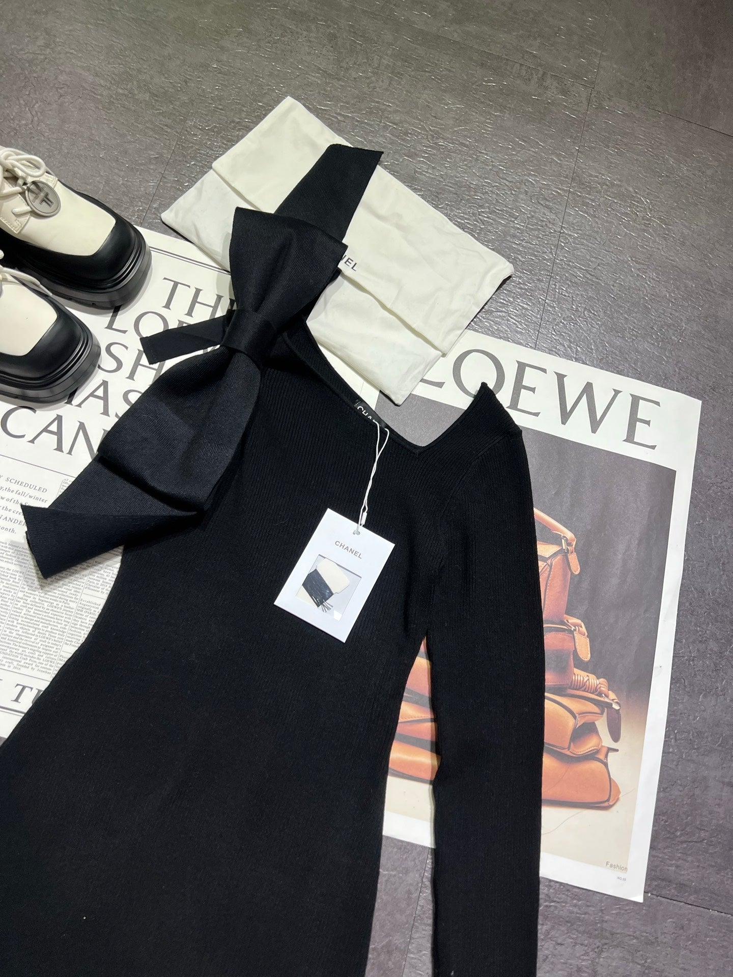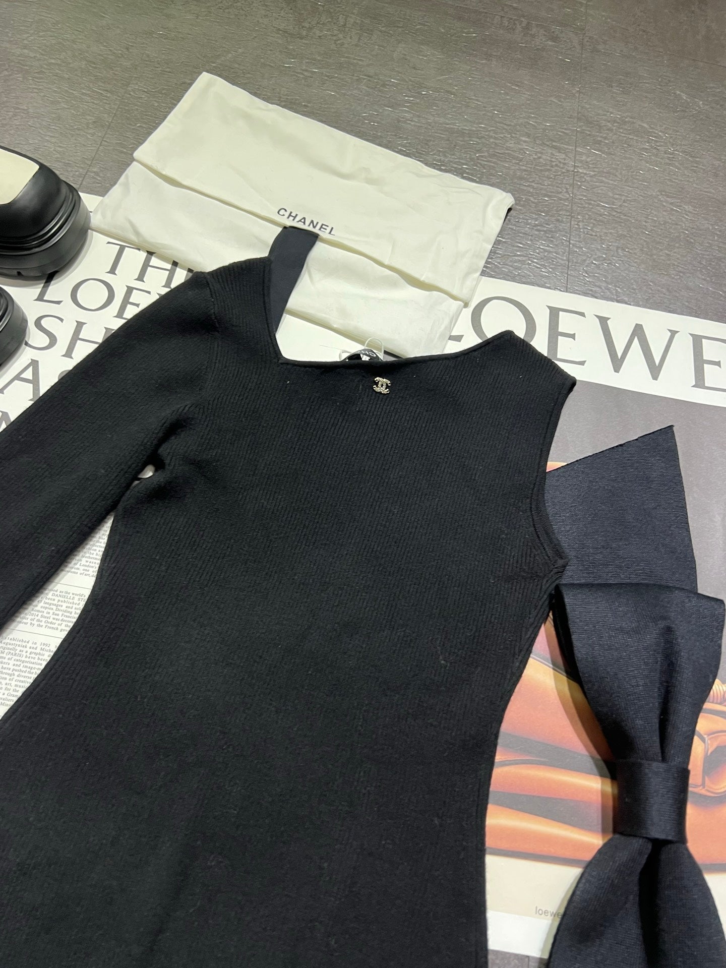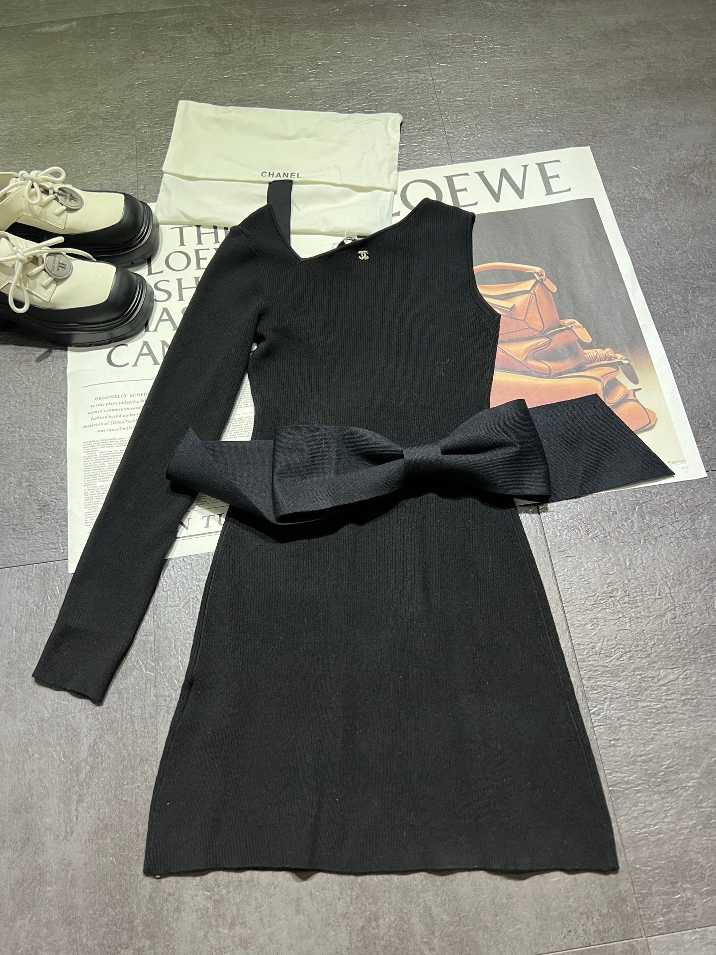 CC 25K Bow Series Off-Shoulder Dress Black Wool