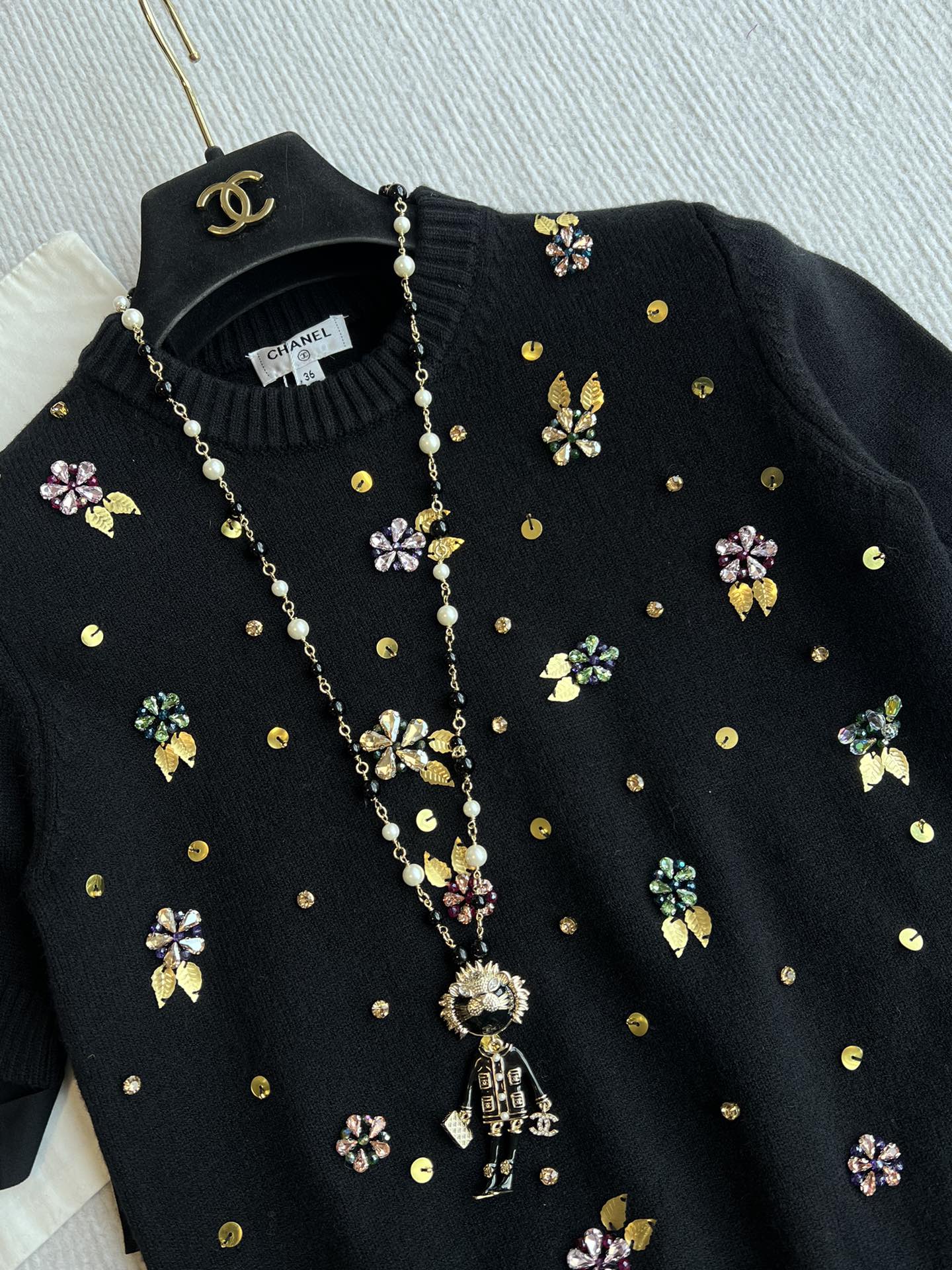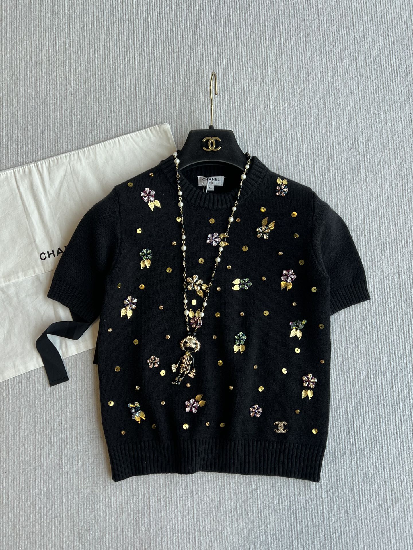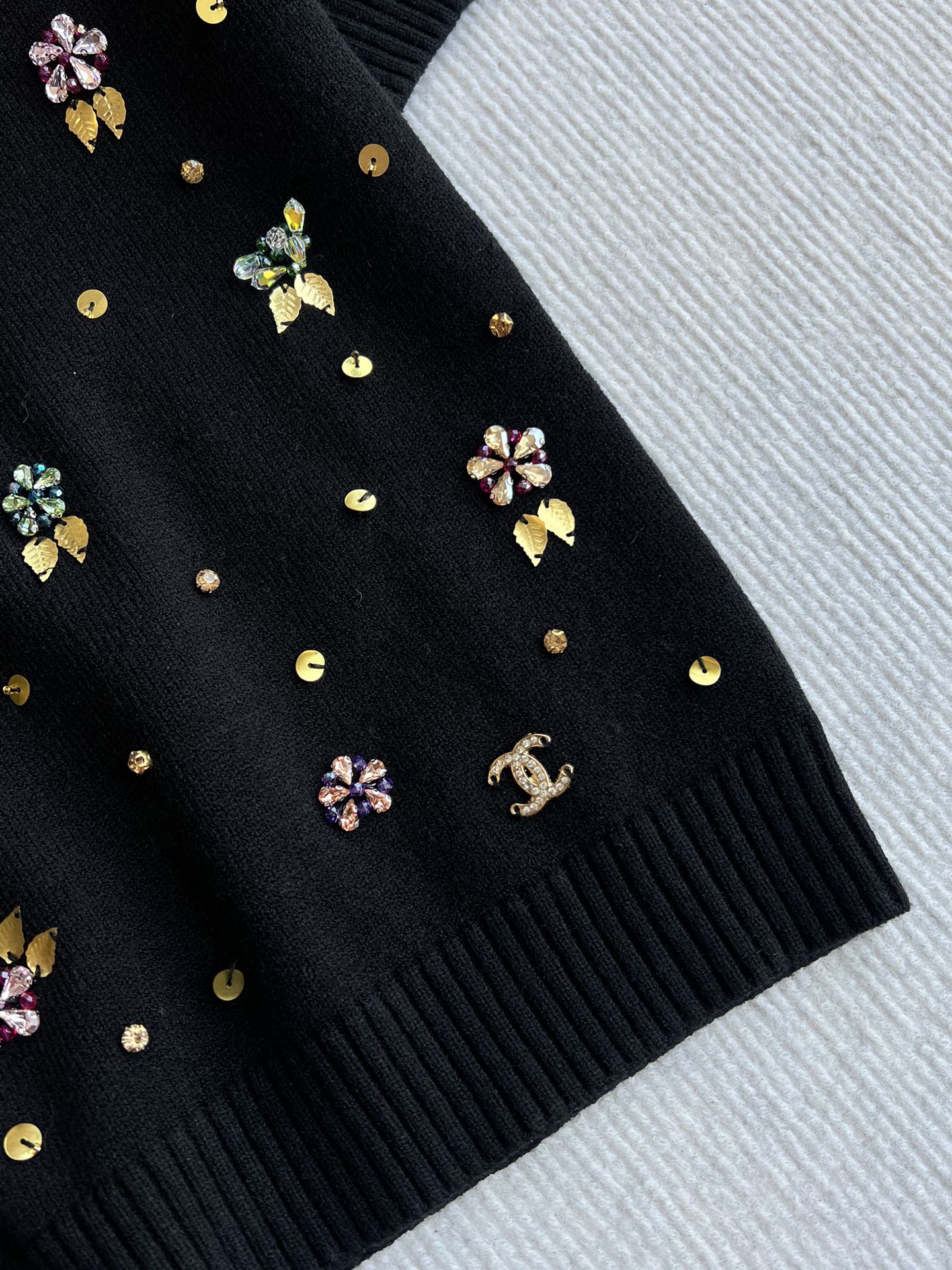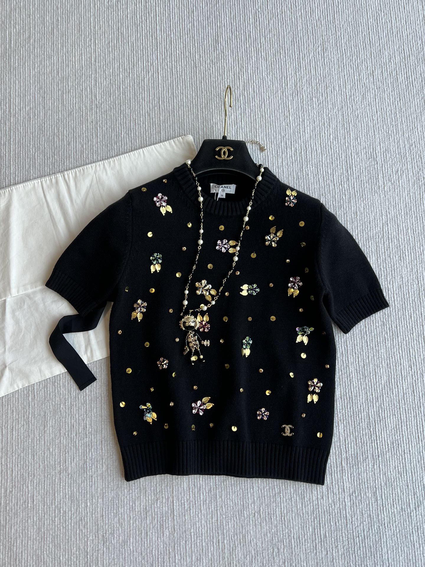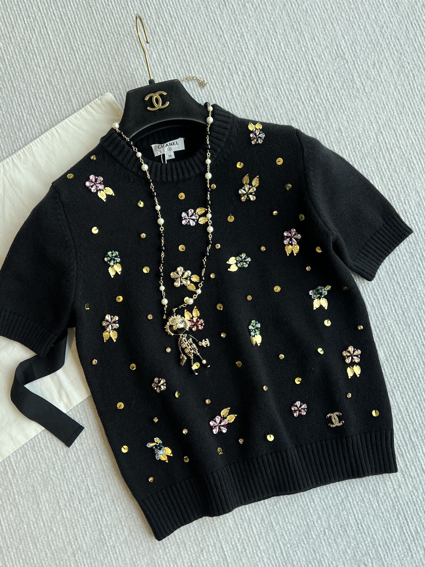 CC 25SS Short Sleeves Flower Knitted In Black Wool 229493