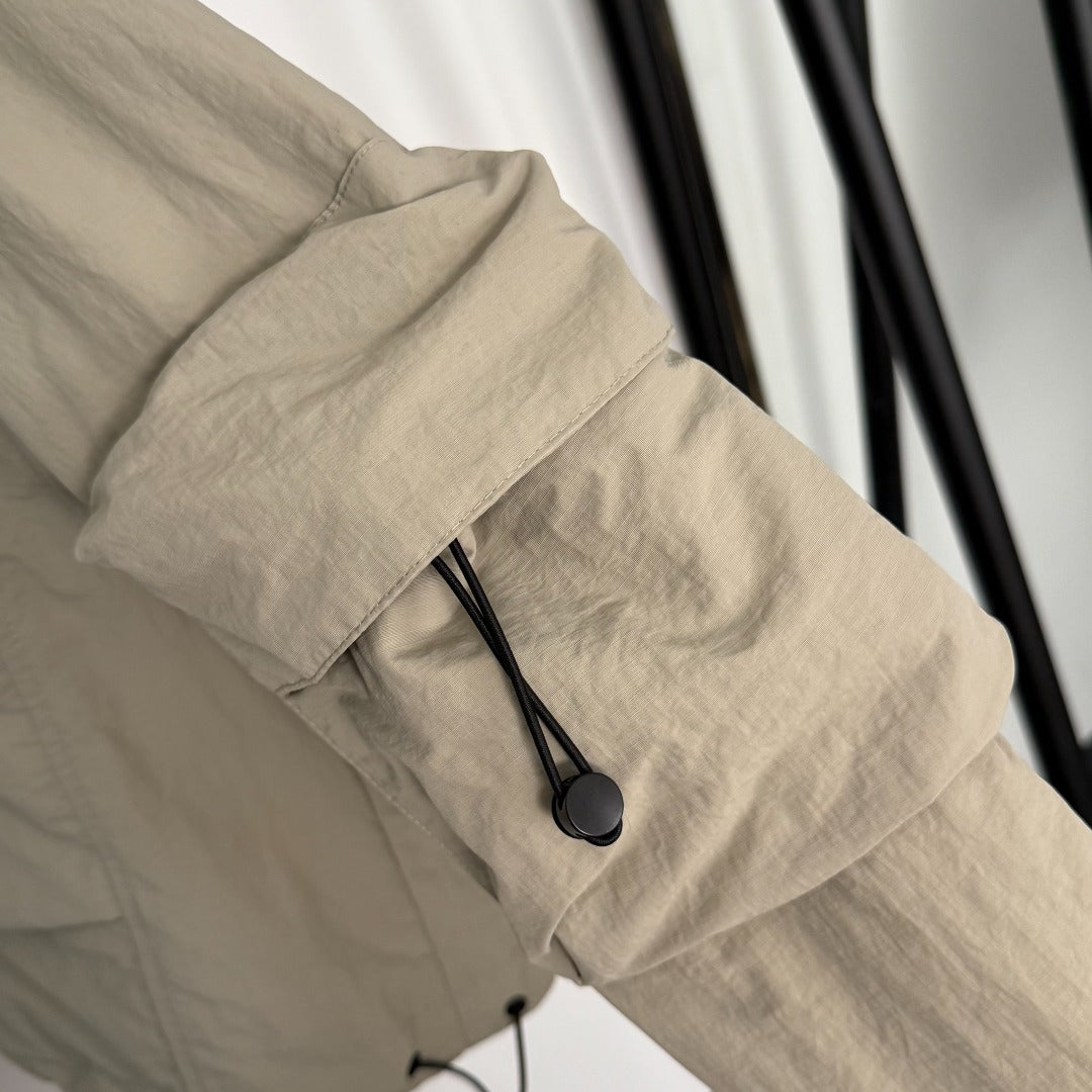 CC Chanel Style Rubber Logo Work Pocket Long Sleeve Hooded Cotton Jacket
