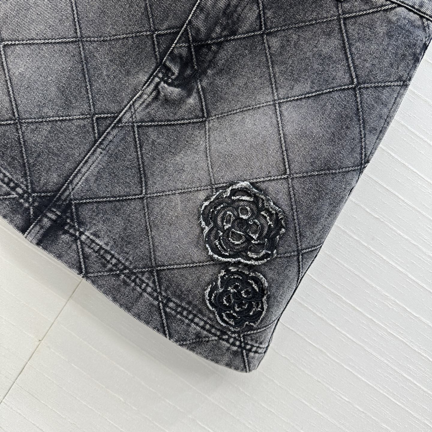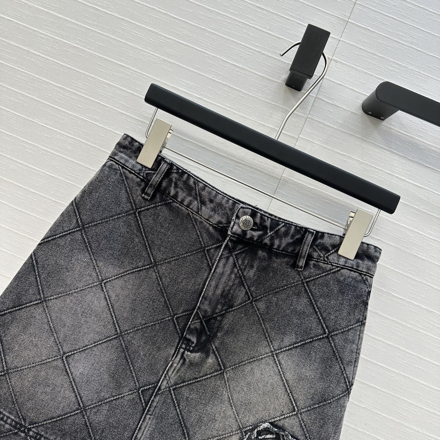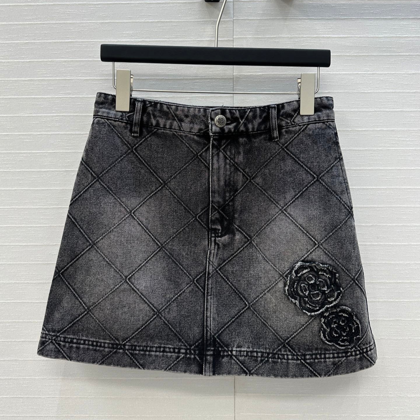 CC Flower Denim Skirt Black Cotton
