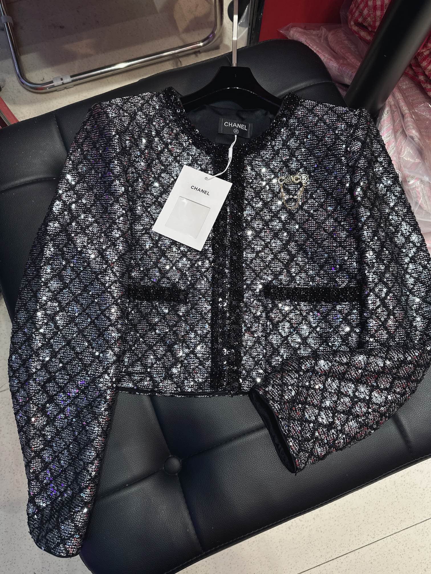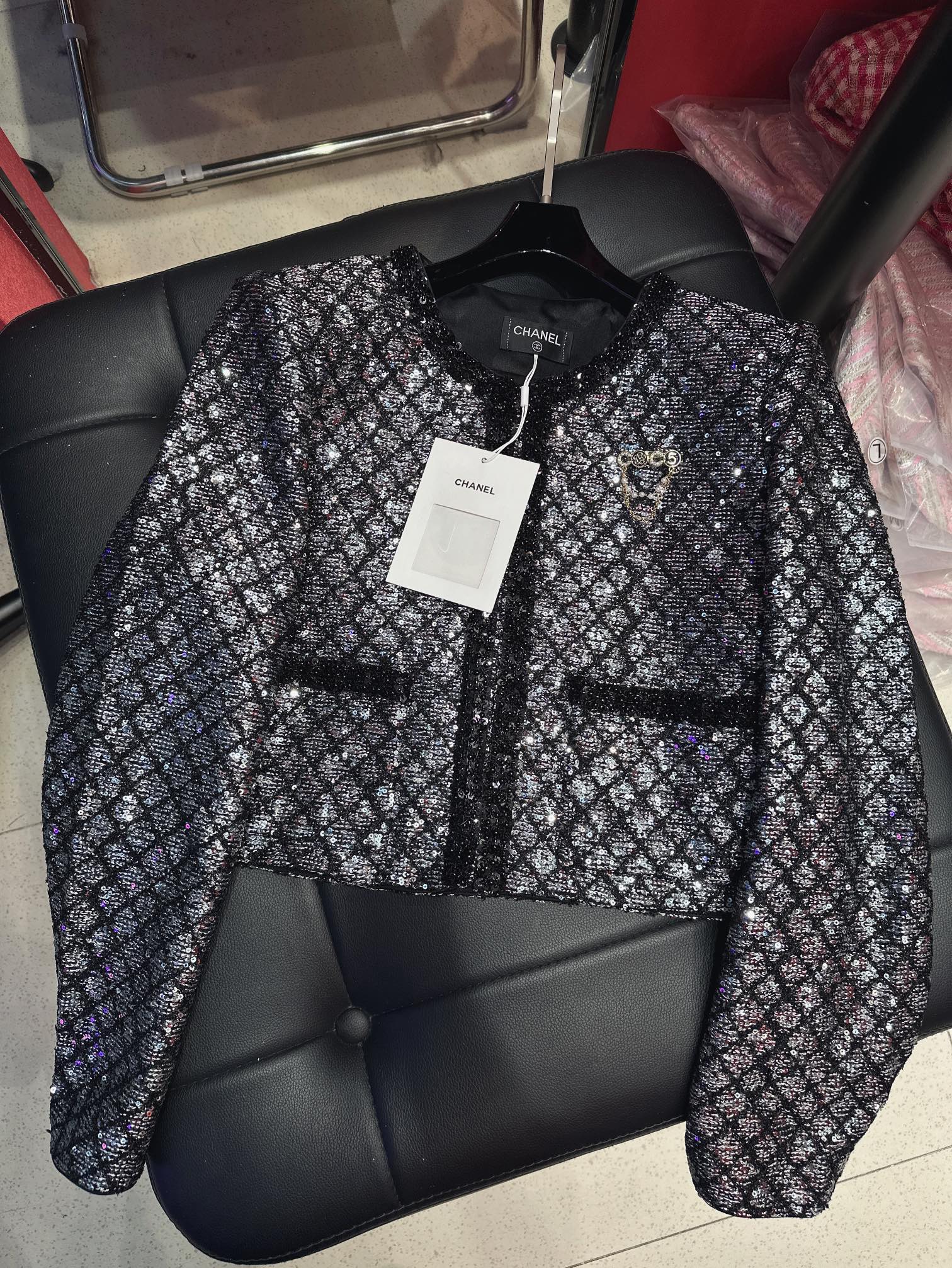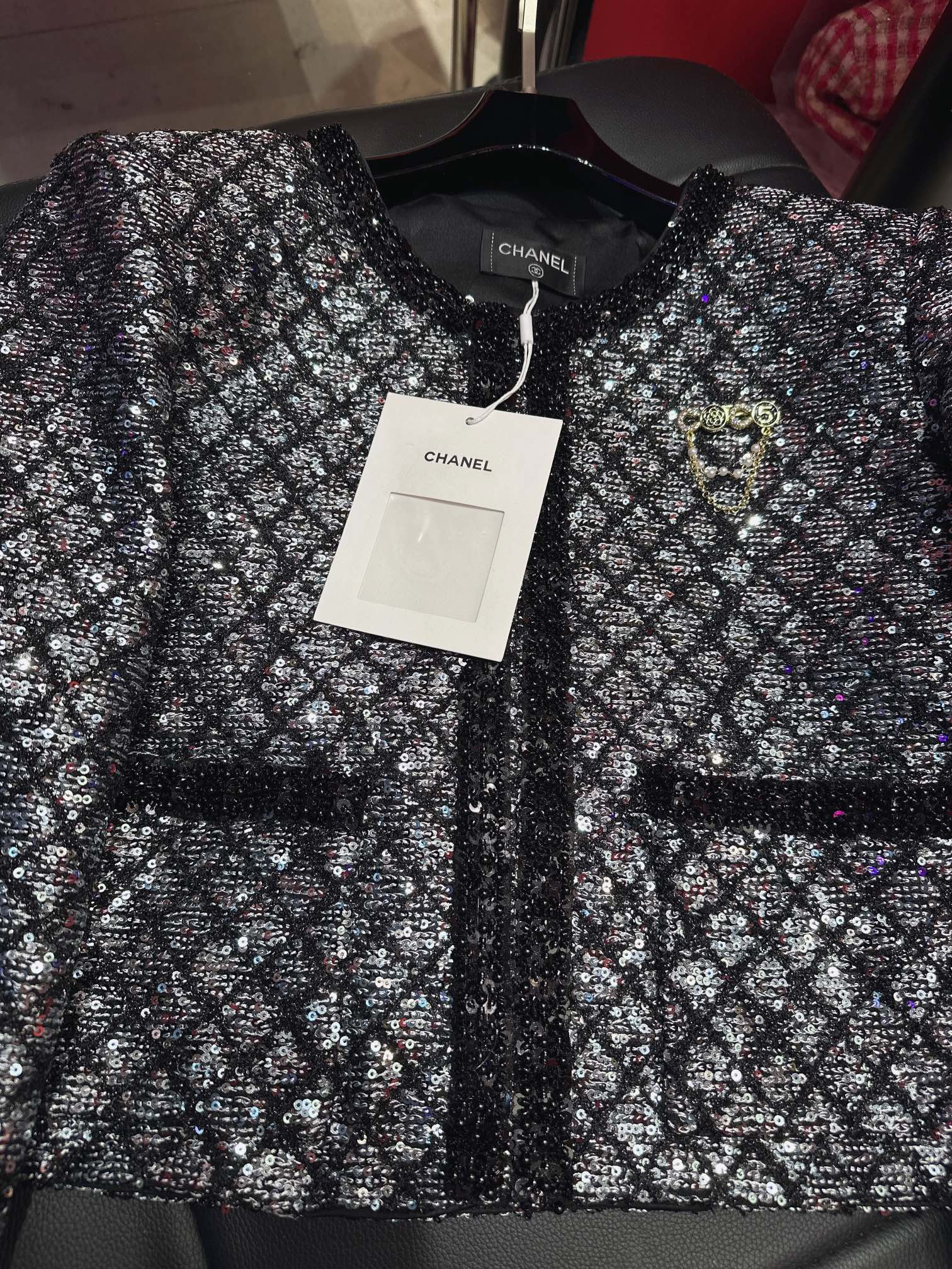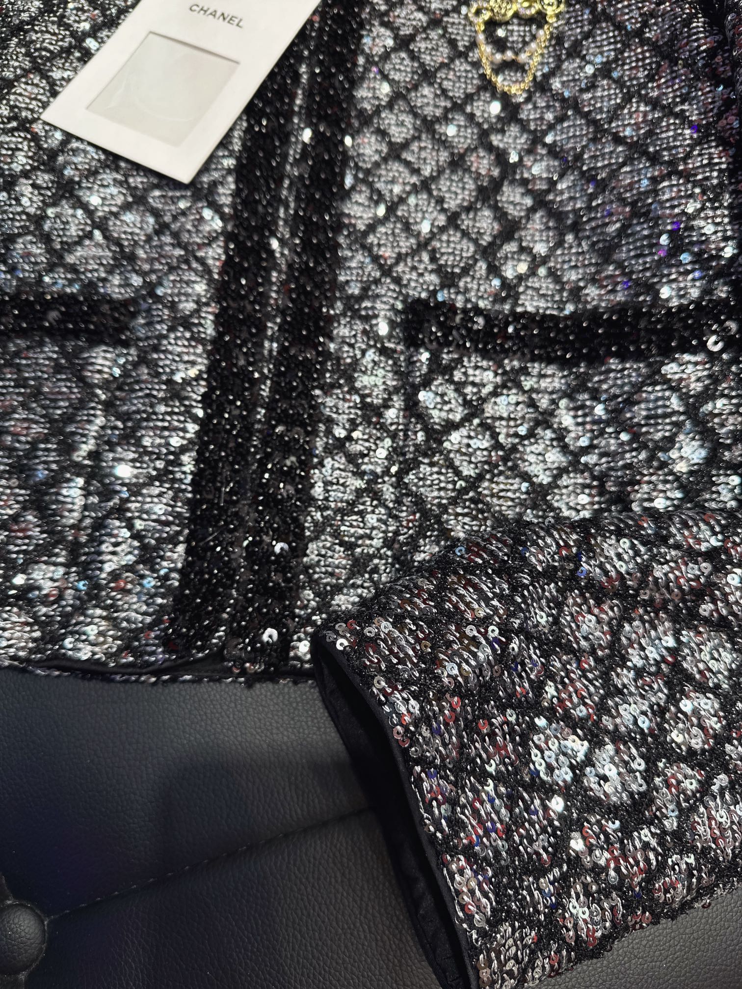 CC Plaid Jacket With Sparkling Beading and Black Stone Border