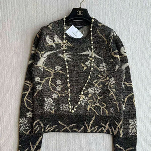 CC Sweater in Navy Blue Gold Wool and Metal Film