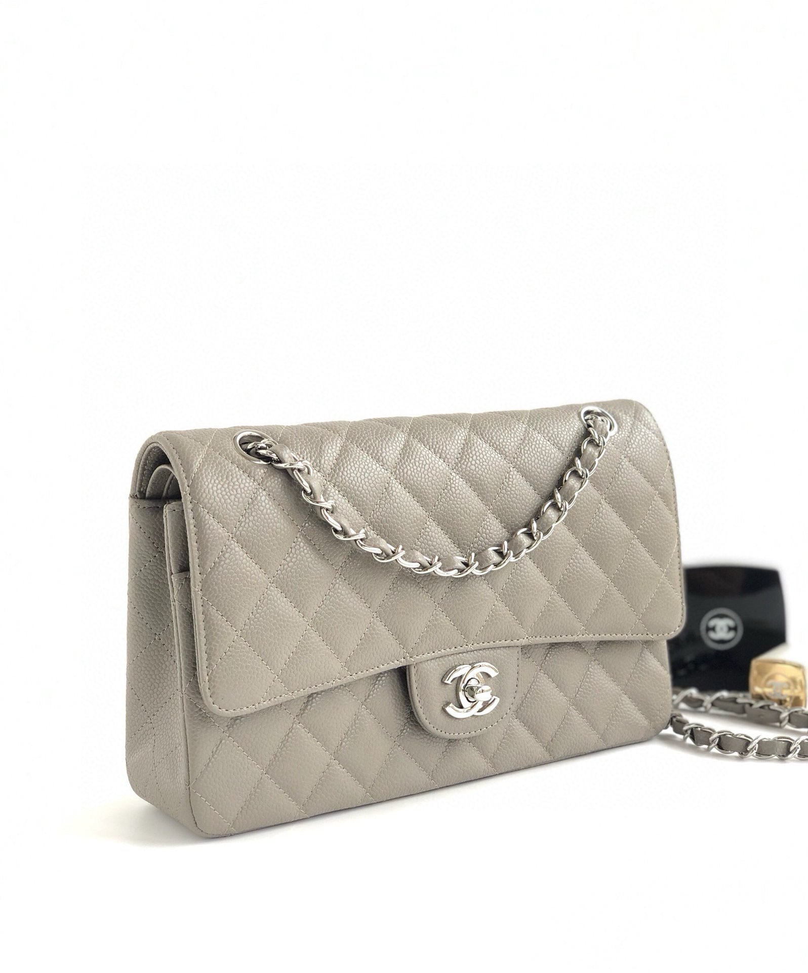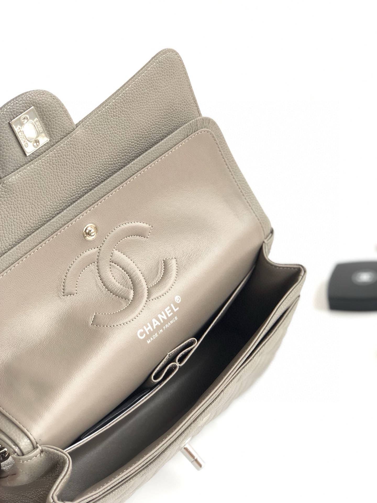 CC CLASSIC FLAP 25CM GRAY CAVIAR SILVER HARDWARE