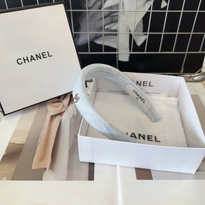 WHITE FABRIC WITH GOLD LOGO HAIRBAND 410841