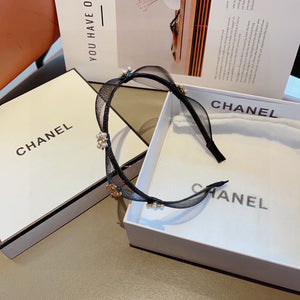 COLORFUL VOILE FABRIC WITH PEARL CHAIN HAIRBAND 410874