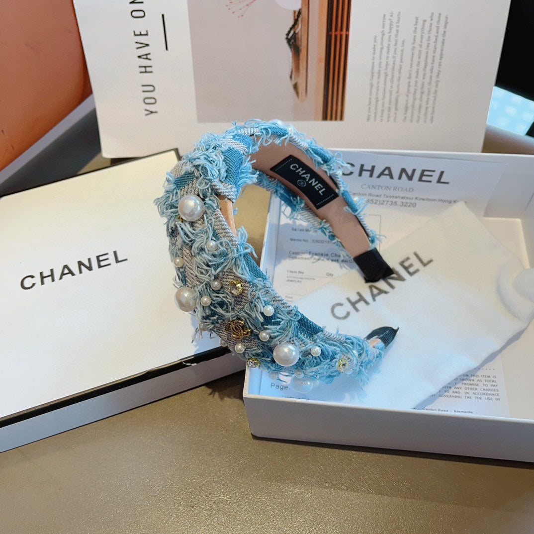 LIGHT BLUE MIX PALE GRAY FABRIC HAIRBAND WITH PEARL 410863