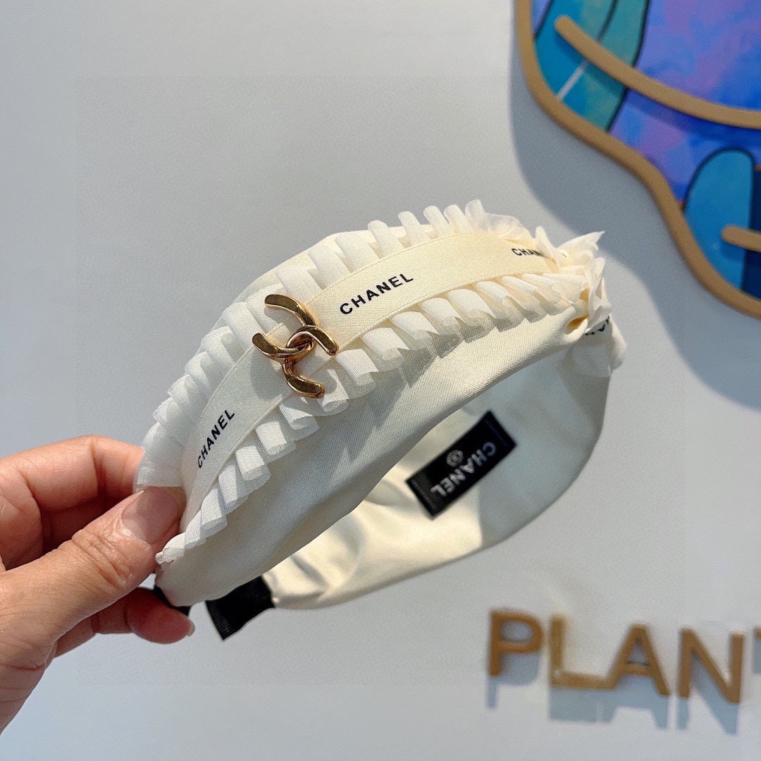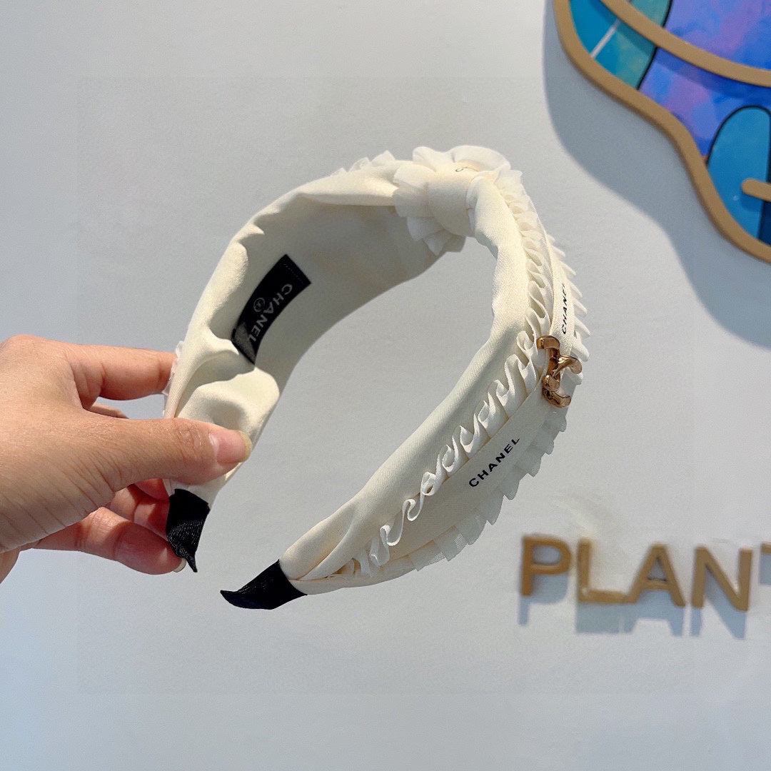 WHITE FABRIC WITH GOLD LOGO HAIRBAND 410841