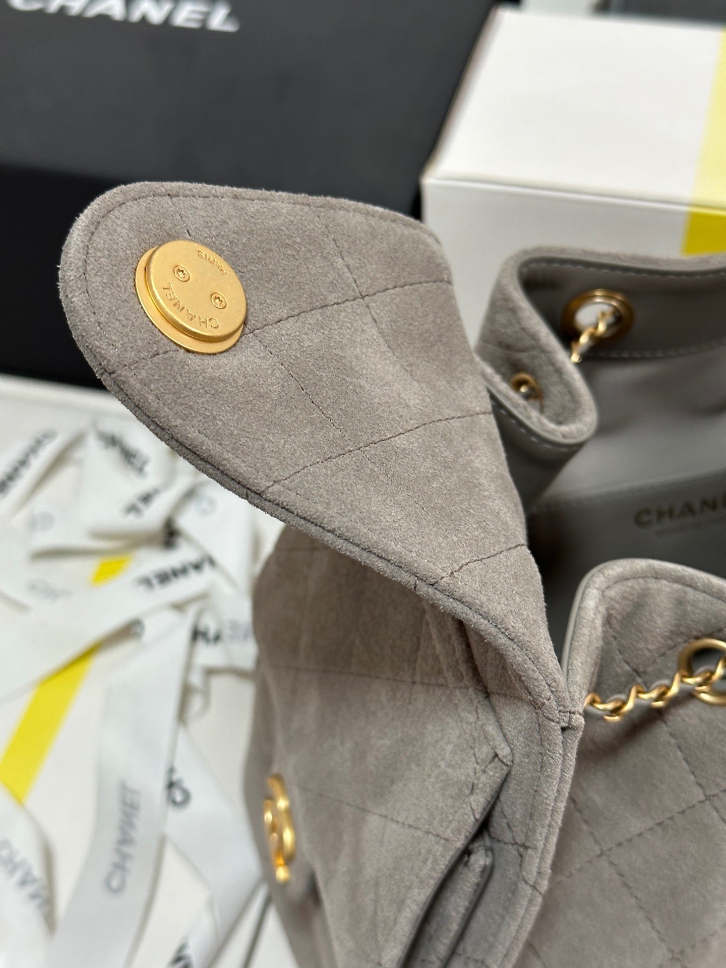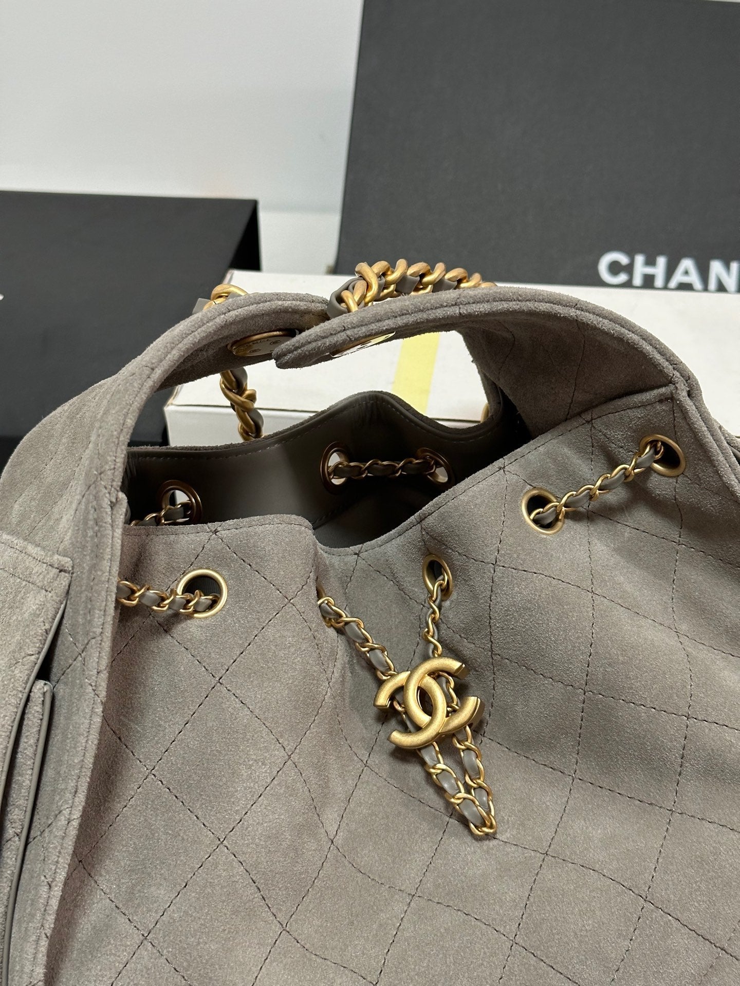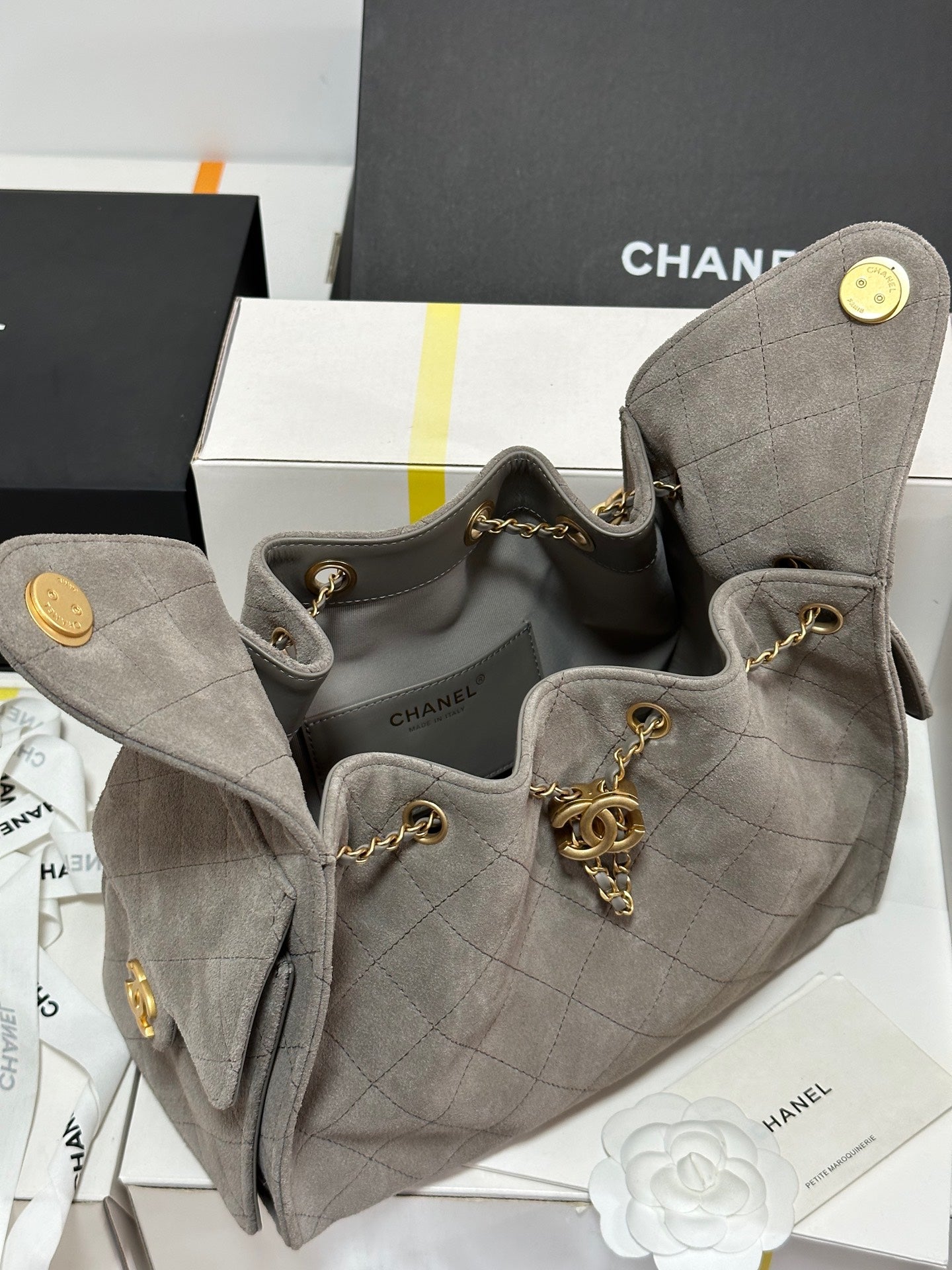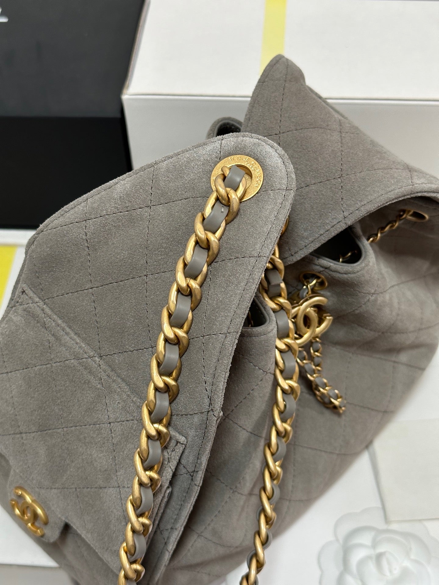 - Color: Grey, Gold hardware