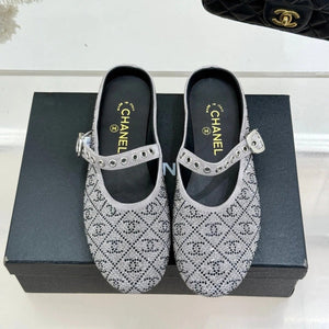 CC Flat Mules 25ss In Grey Embellished With Rhinestones