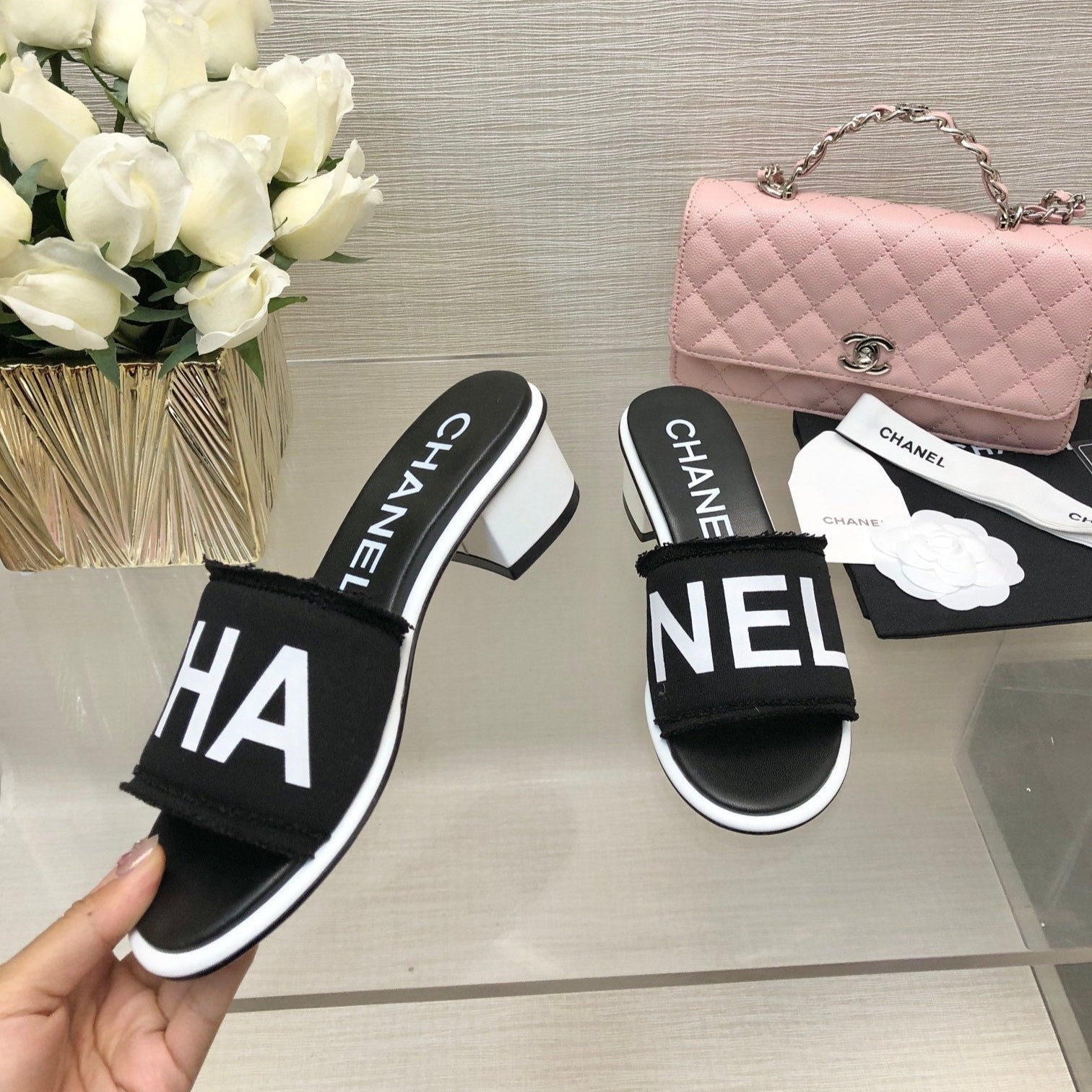 CC 25C Mid Heel Mule Black Fabric Material 212961