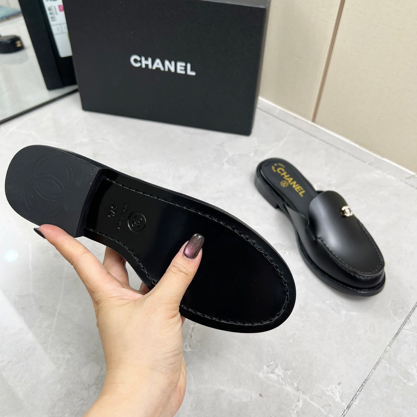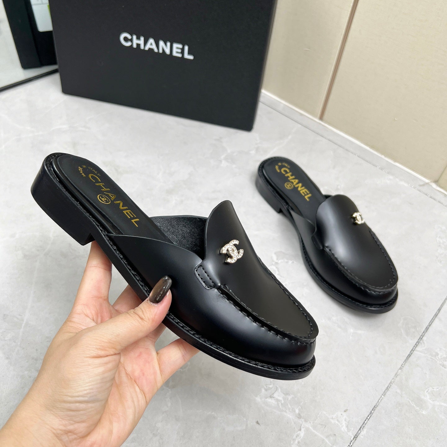 CC 25C Mule Black Calfskin