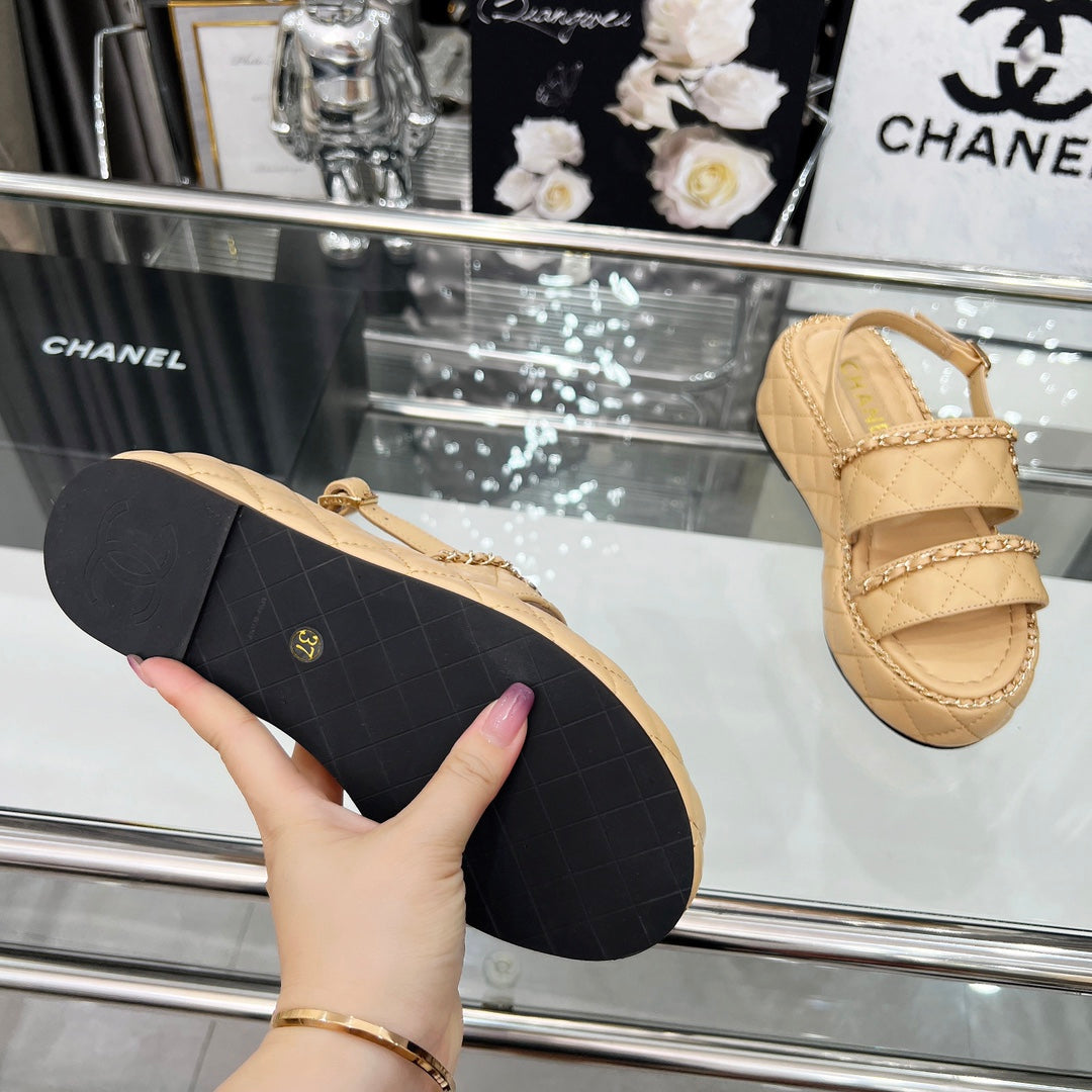 CC 25 Sandals Leather Chain 6cm Beige Lambskin 338654