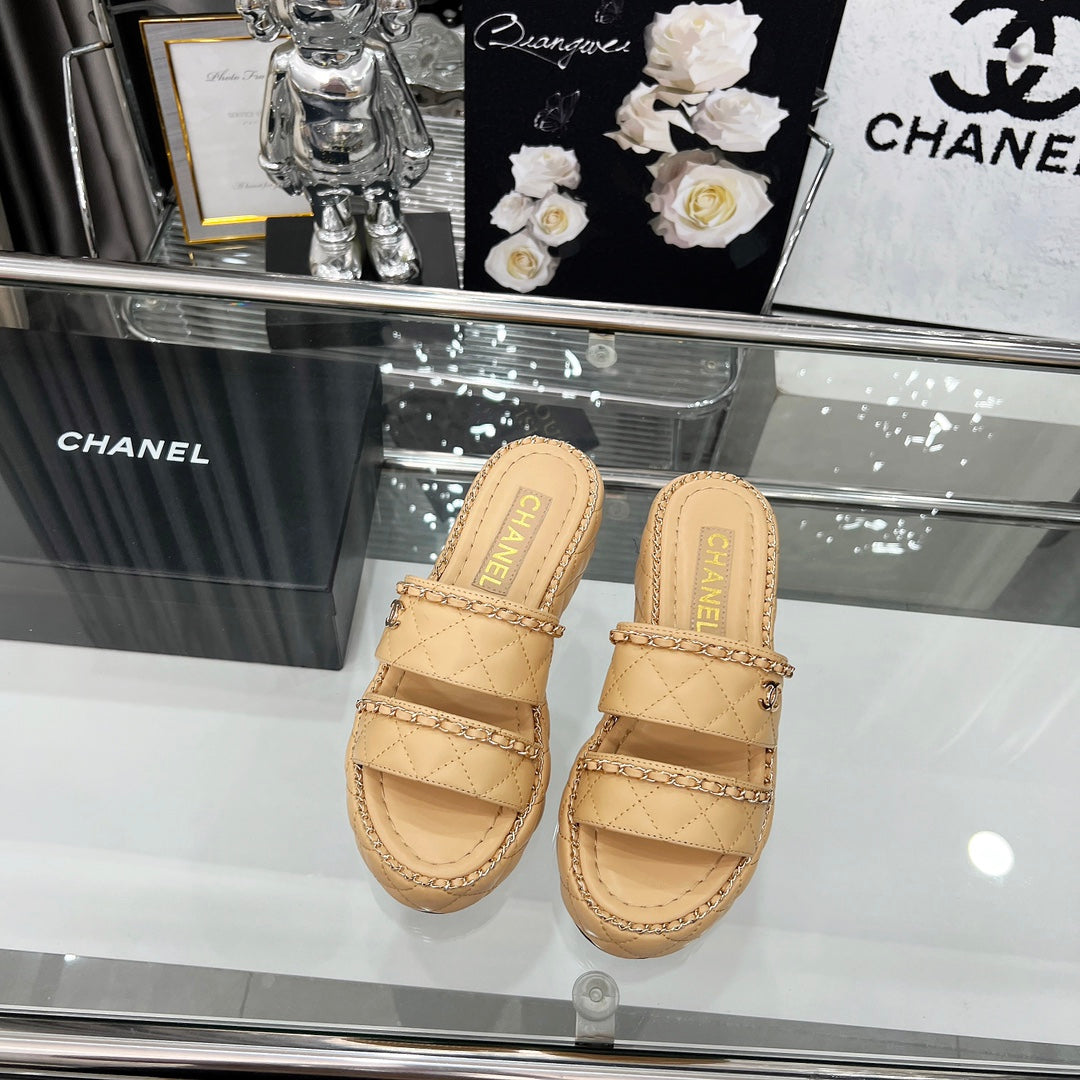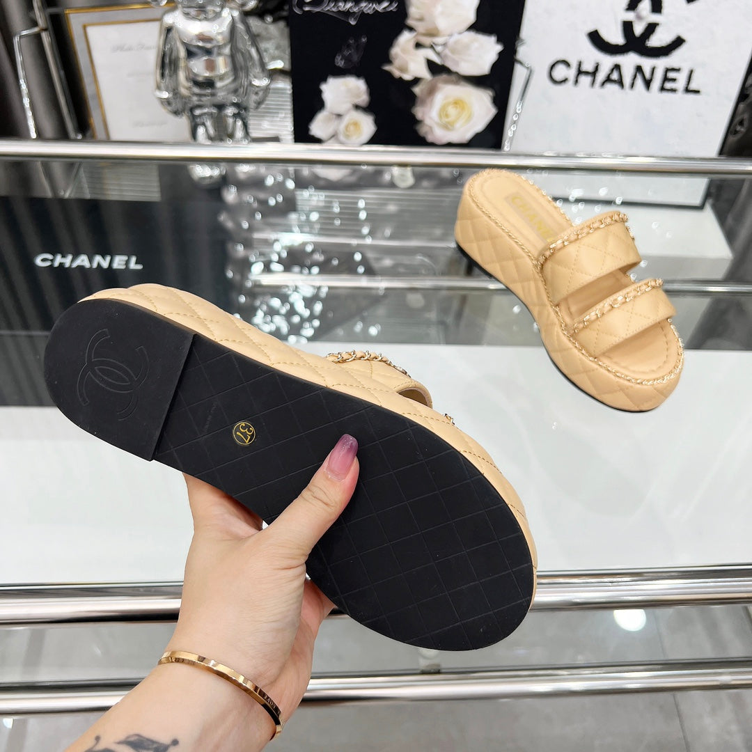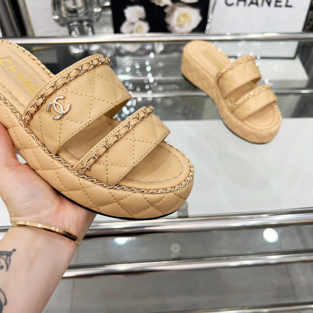 CC 25 Slide Leather Chain 6cm Beige Lambskin 338658