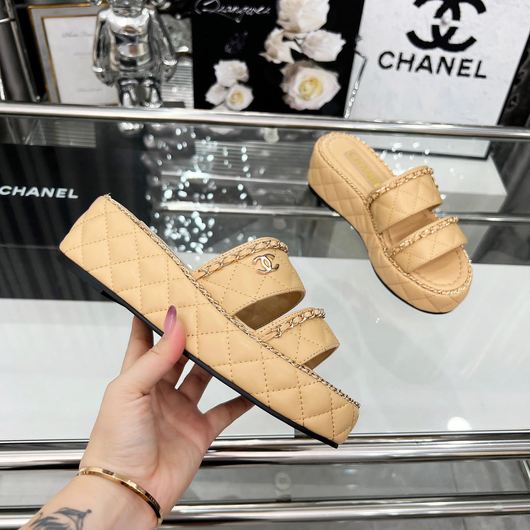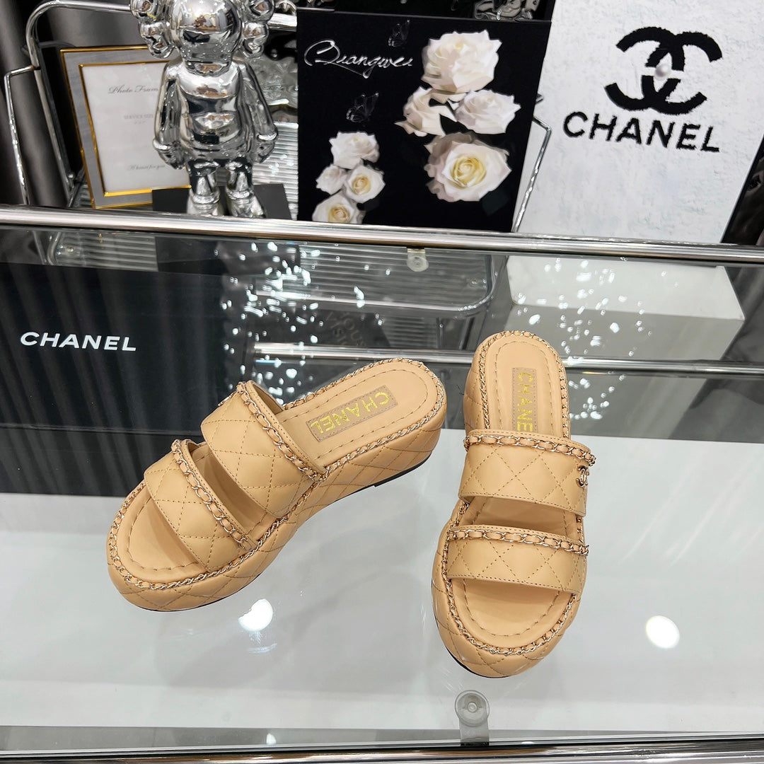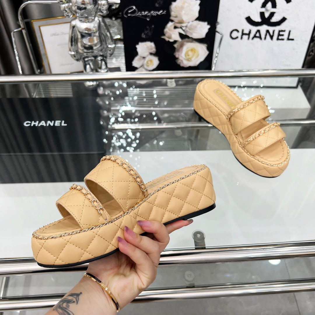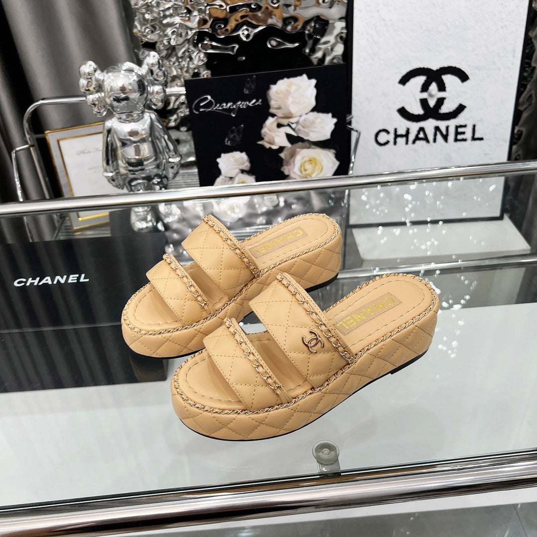 CC 25 Slide Leather Chain 6cm Beige Lambskin 338658