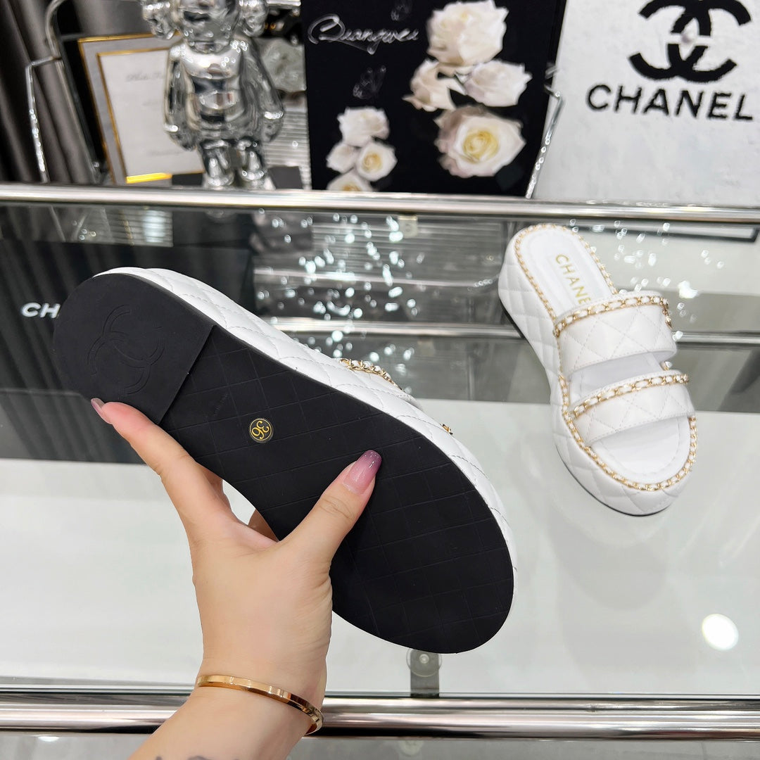 CC 25 Slide Leather Chain 6cm White Lambskin 338659