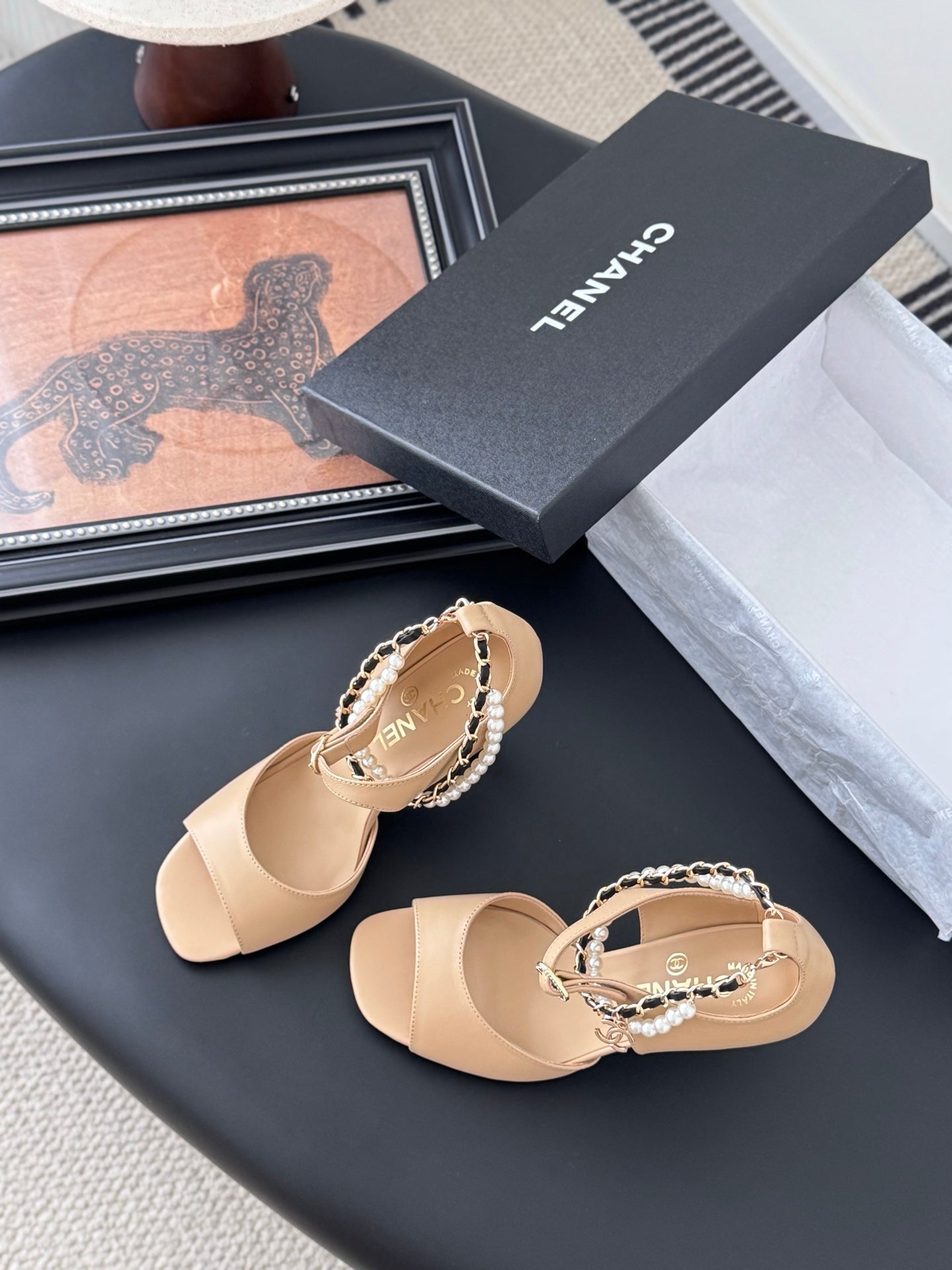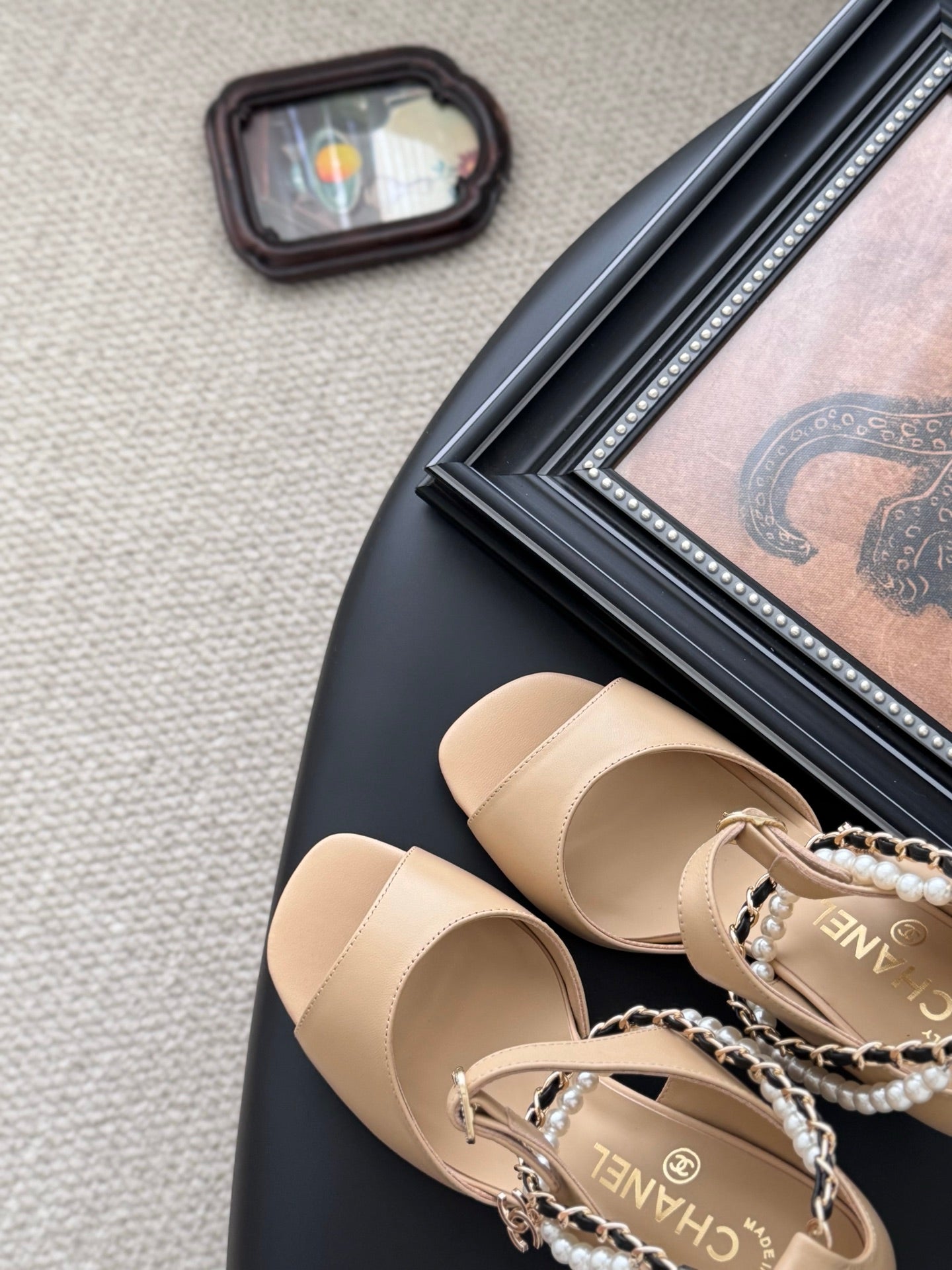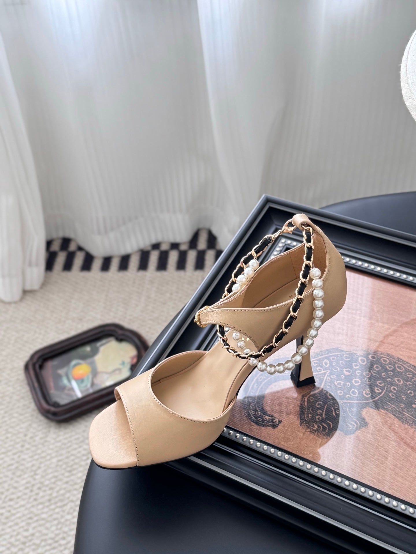 CC 25B Mary Janes 85mm High Heel Pearl Strap Beige Sheepskin