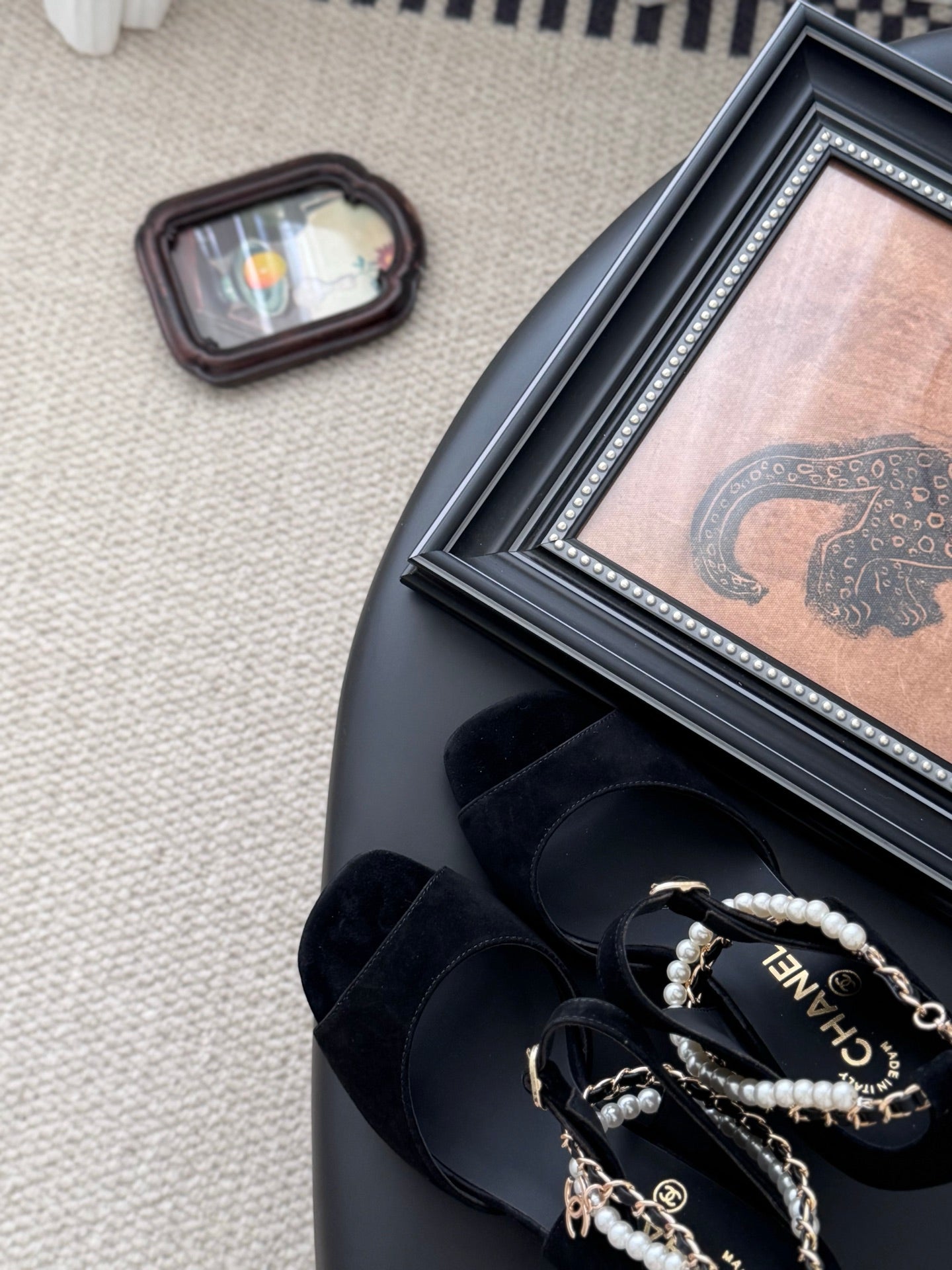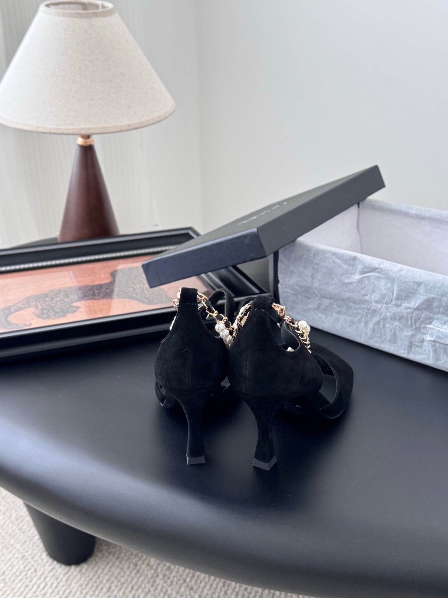 CC 25B Mary Janes 85mm High Heel Pearl Strap Black Suede