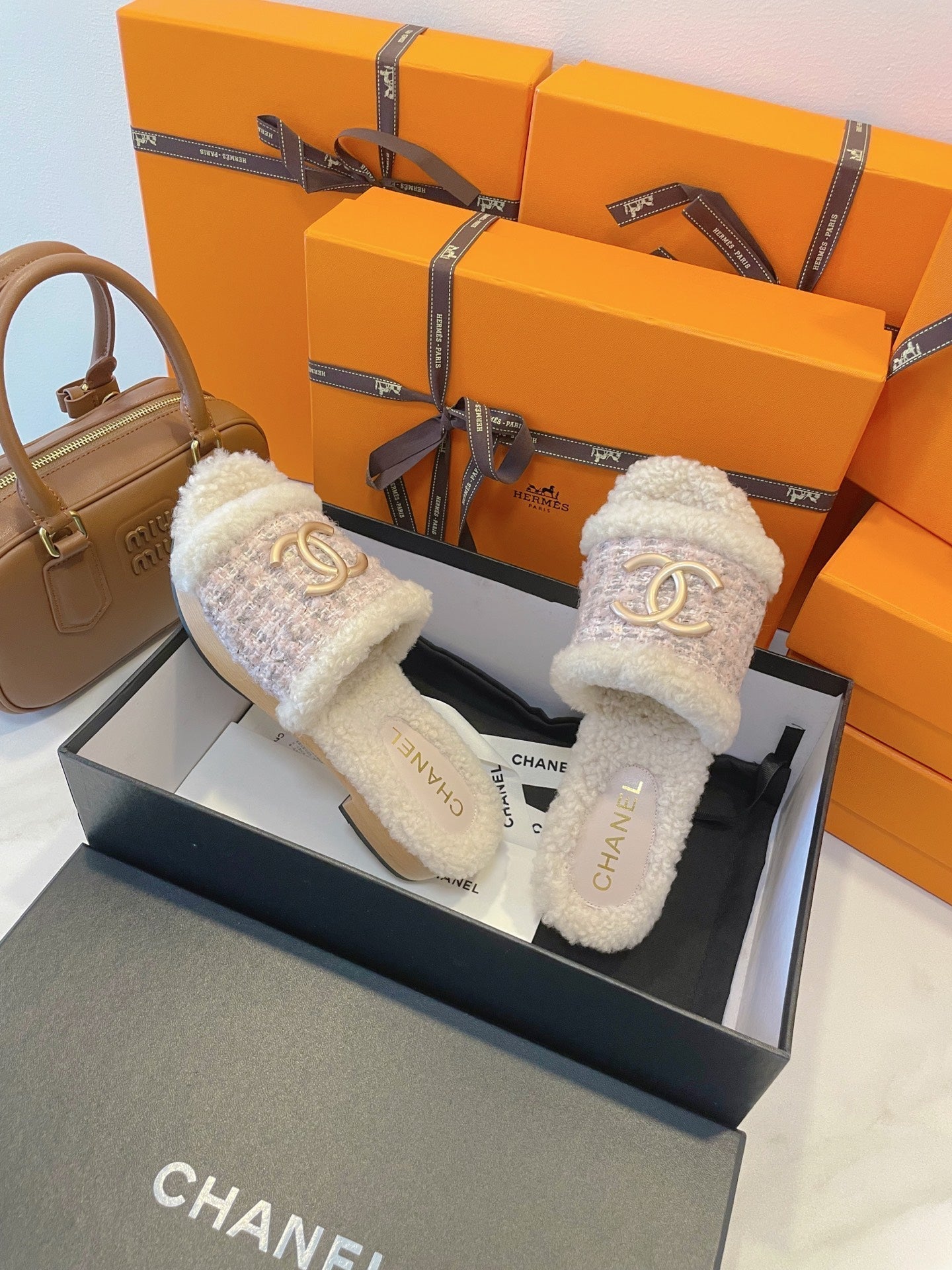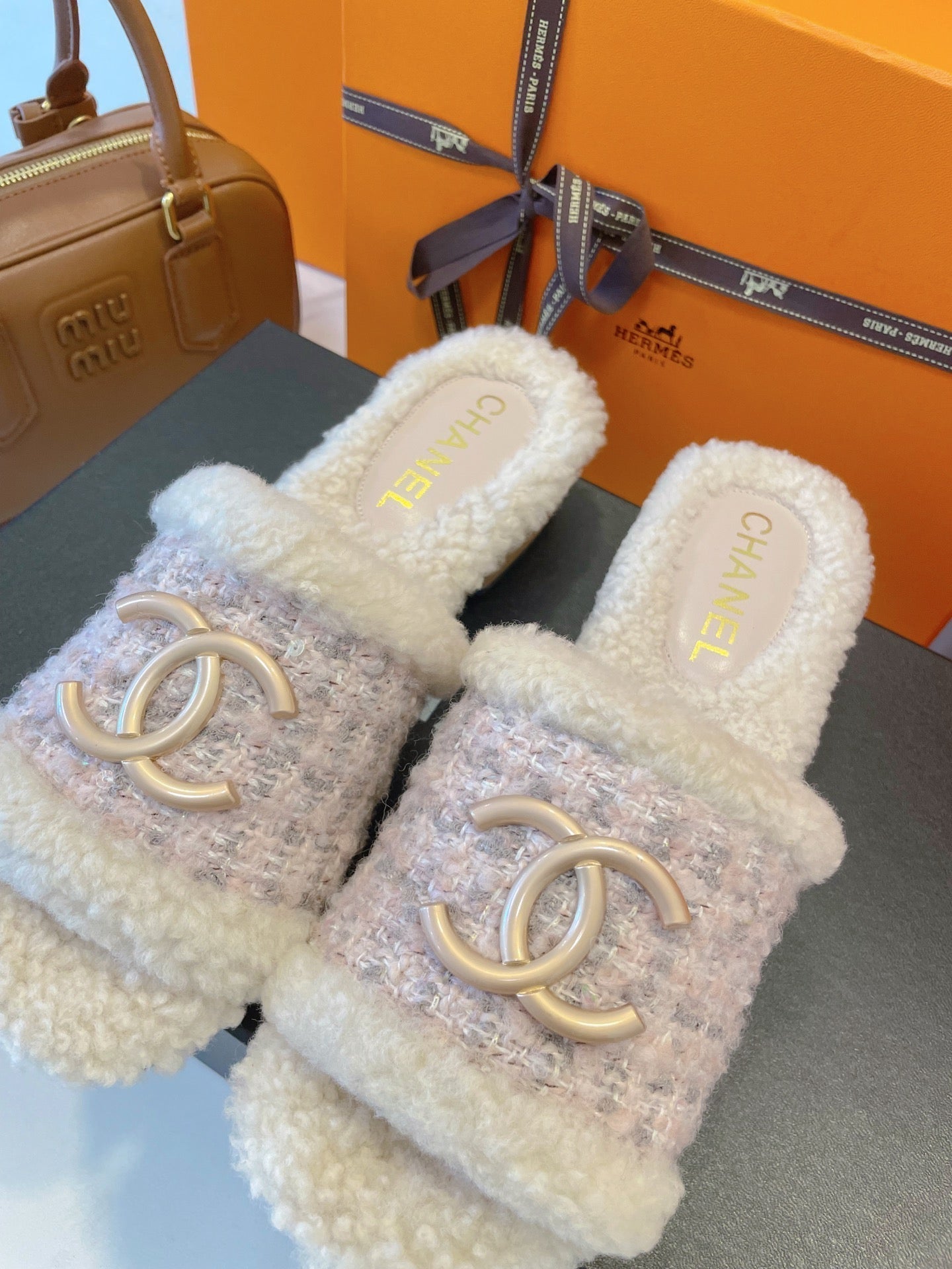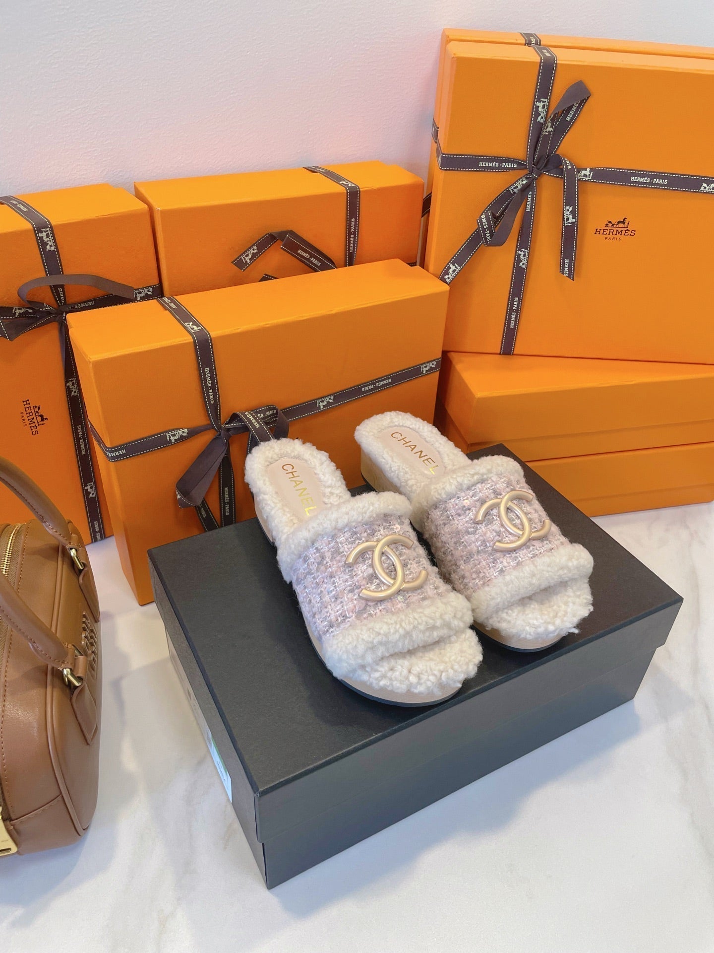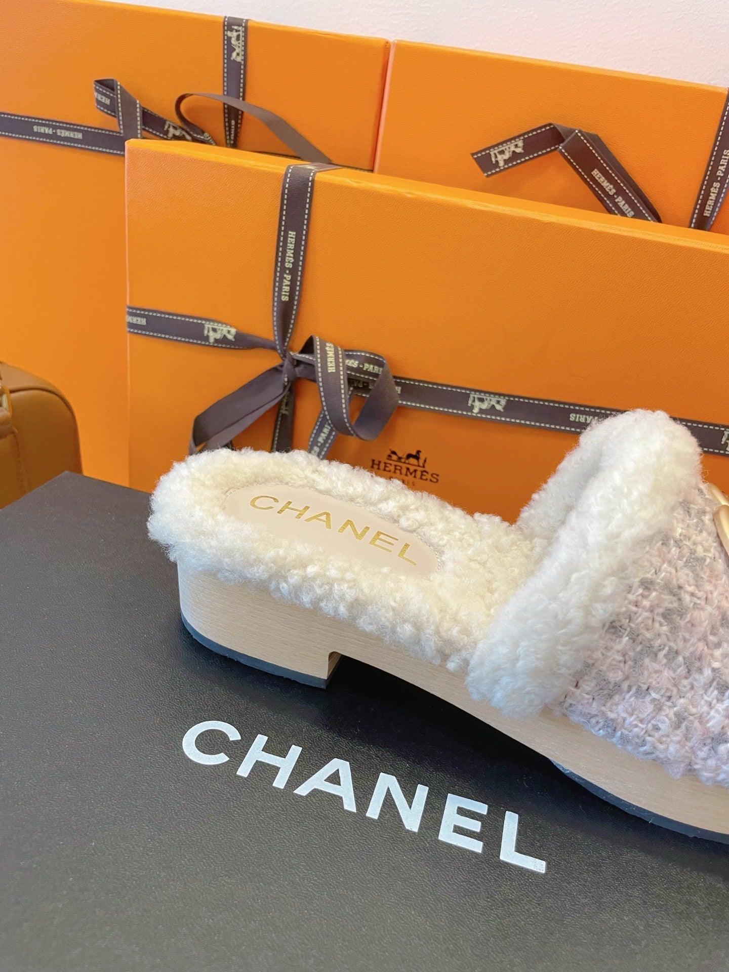 CC 25C Logo Slippers 50mm Multicolor Shearling Wood 423698