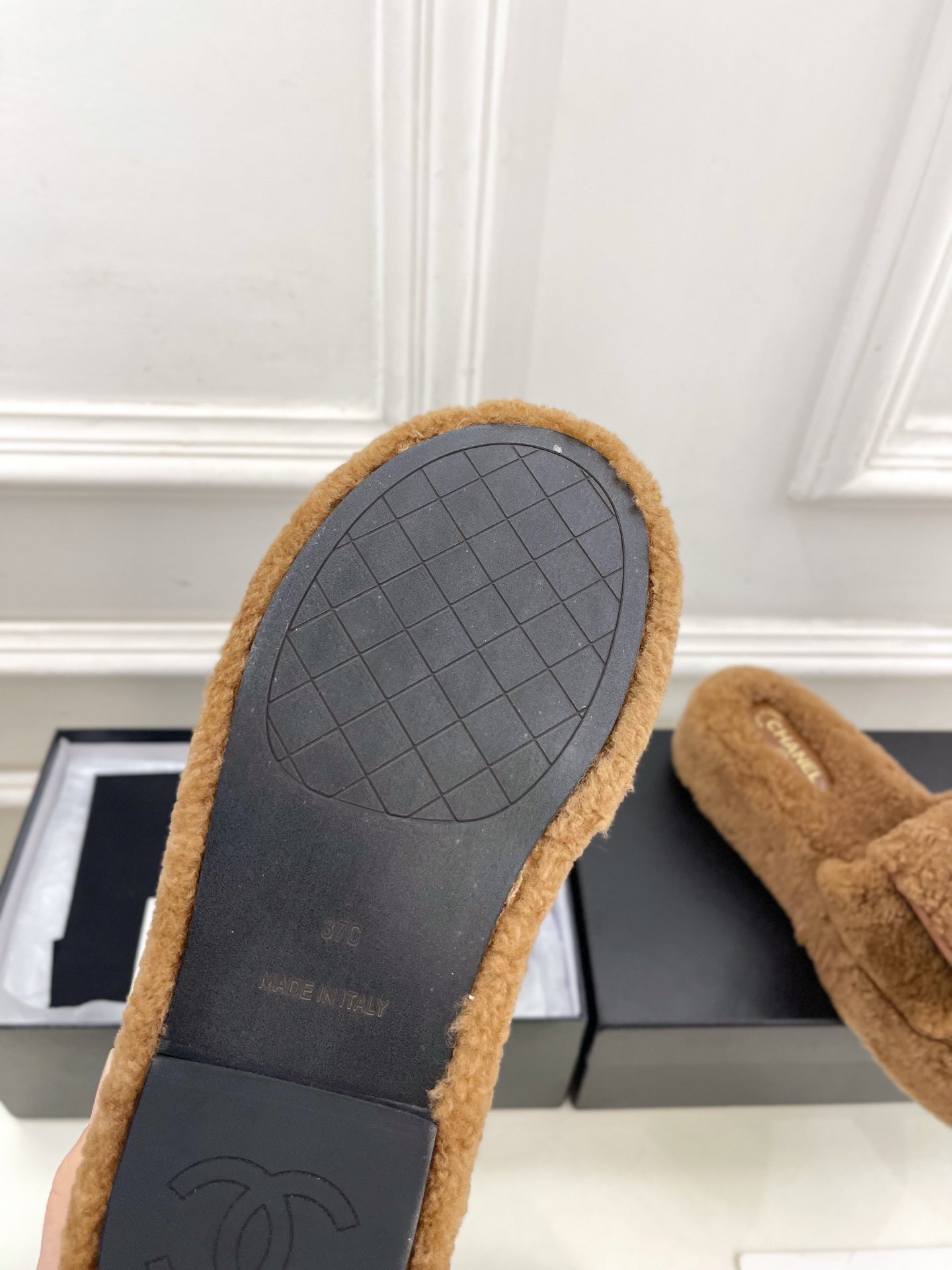 CC 25s Logo Slippers 50mm Brown Wool GHW 435263