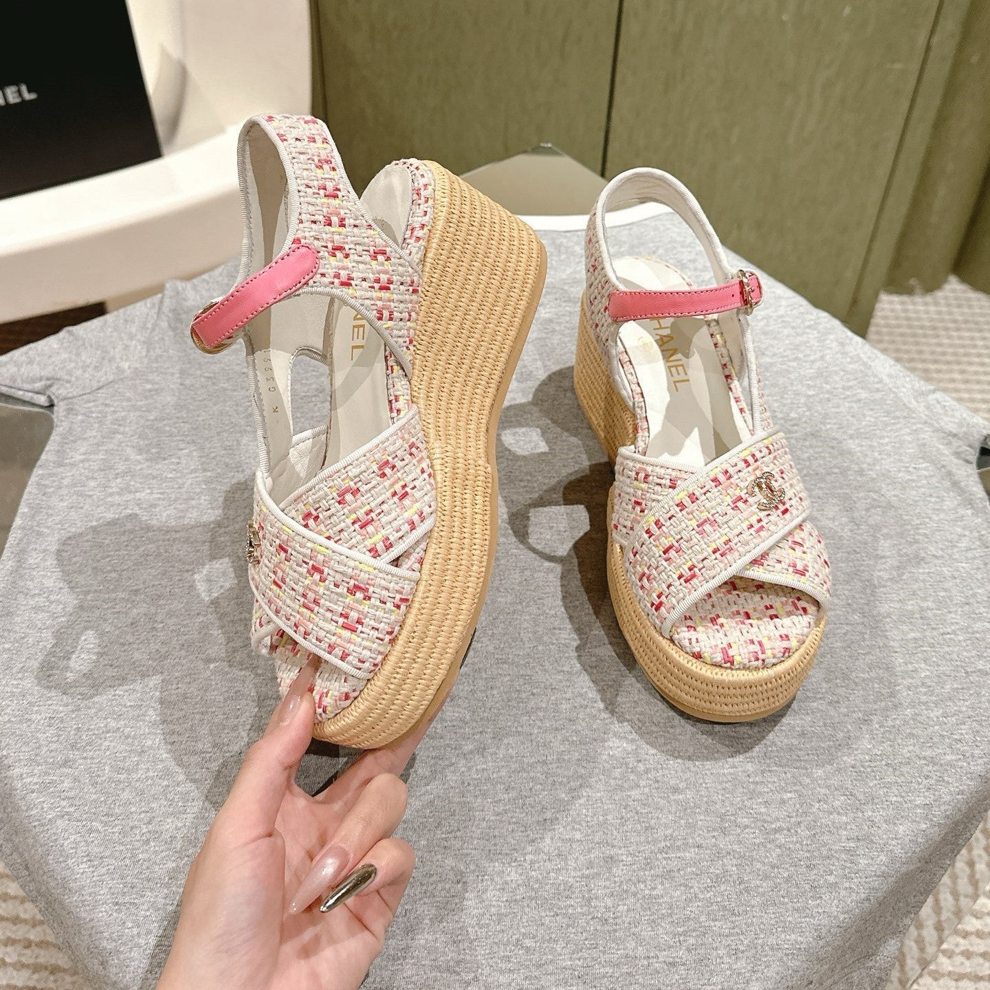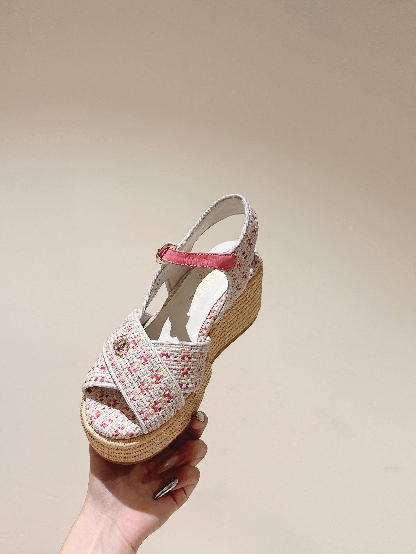 CC 25ss Espadrille Sandals 85mm Pink Colorful Tweed Cowhide 462247