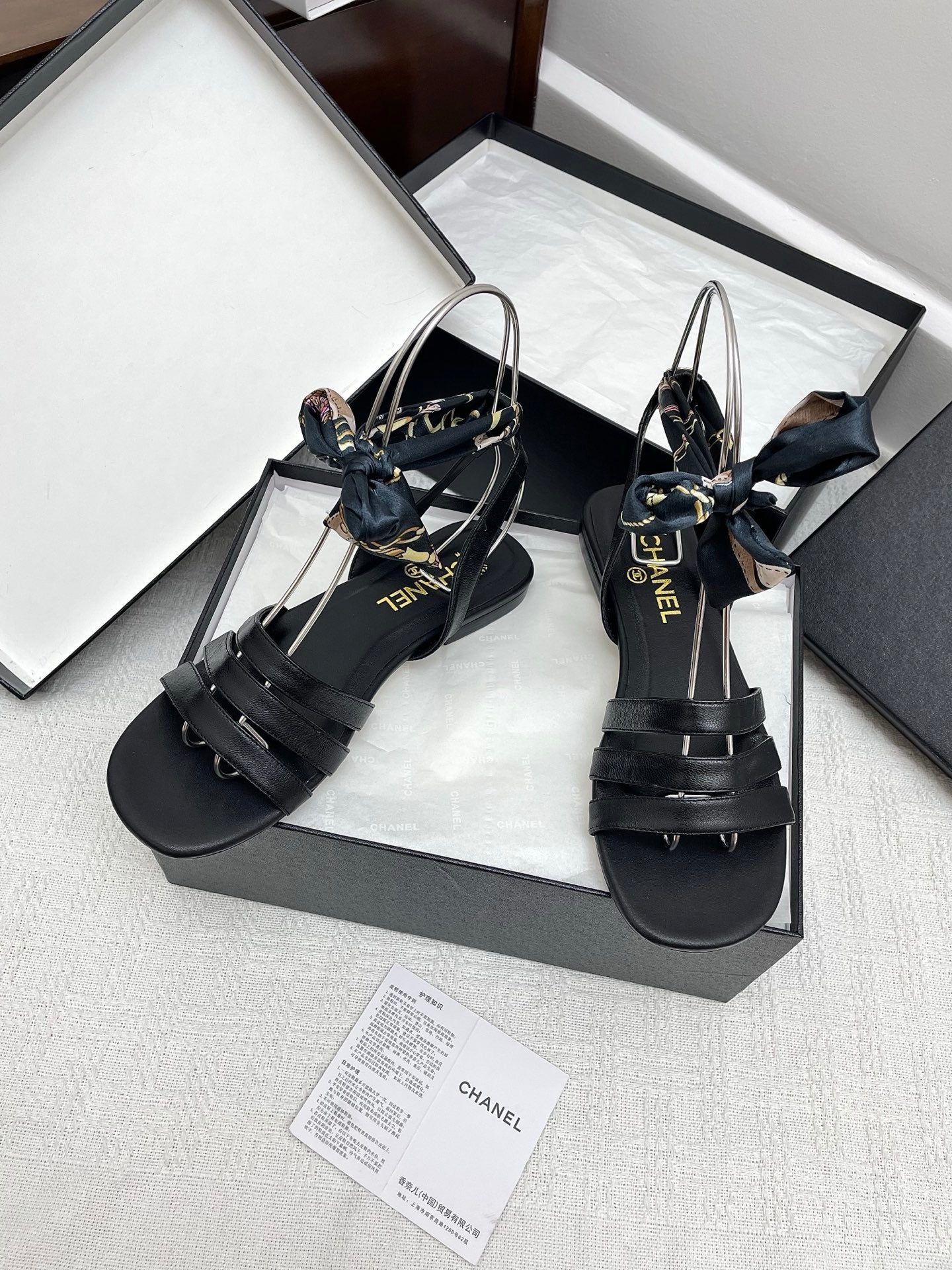 CC 25SS Sandals Three Straps Black Calfskin 338325