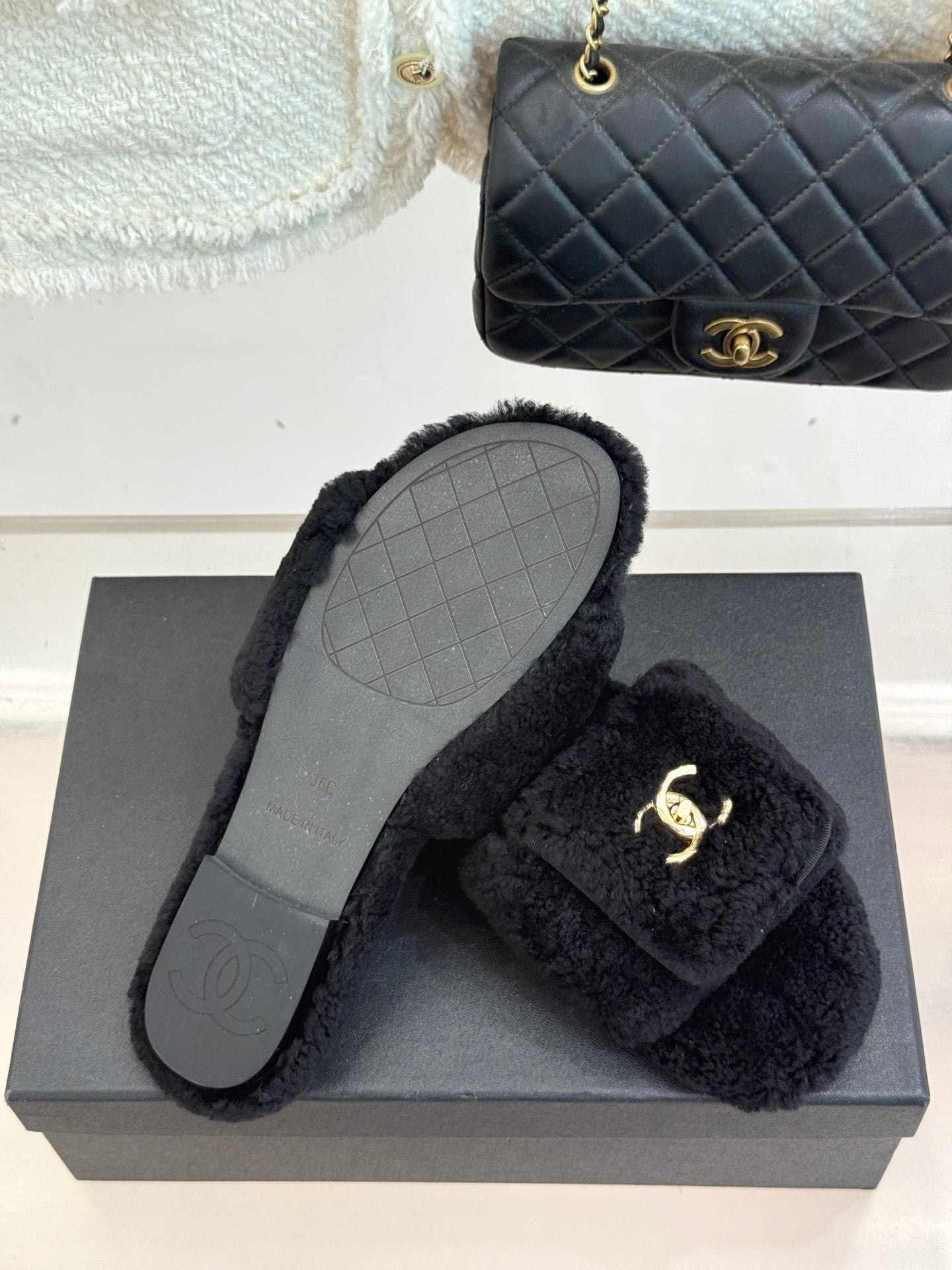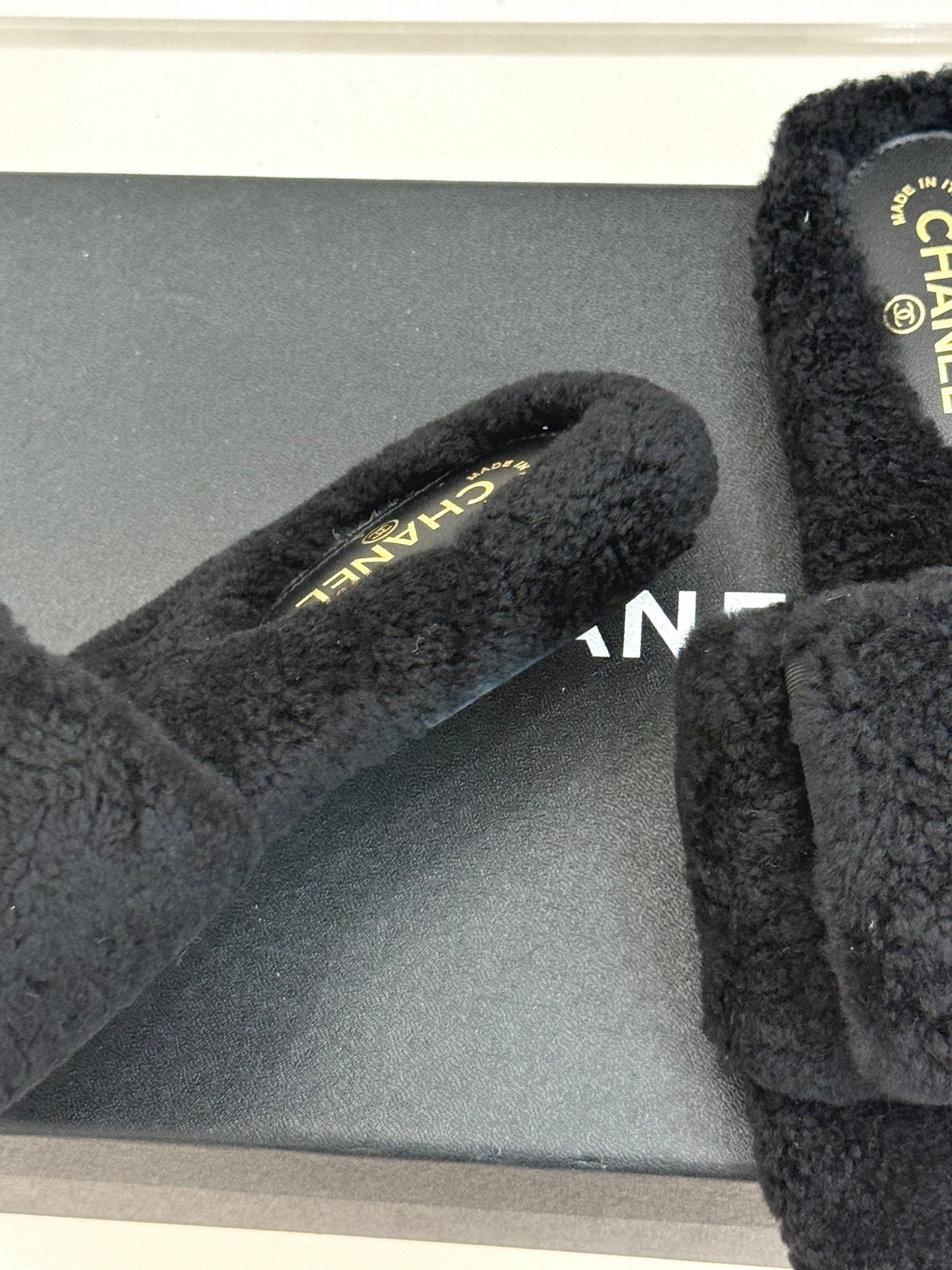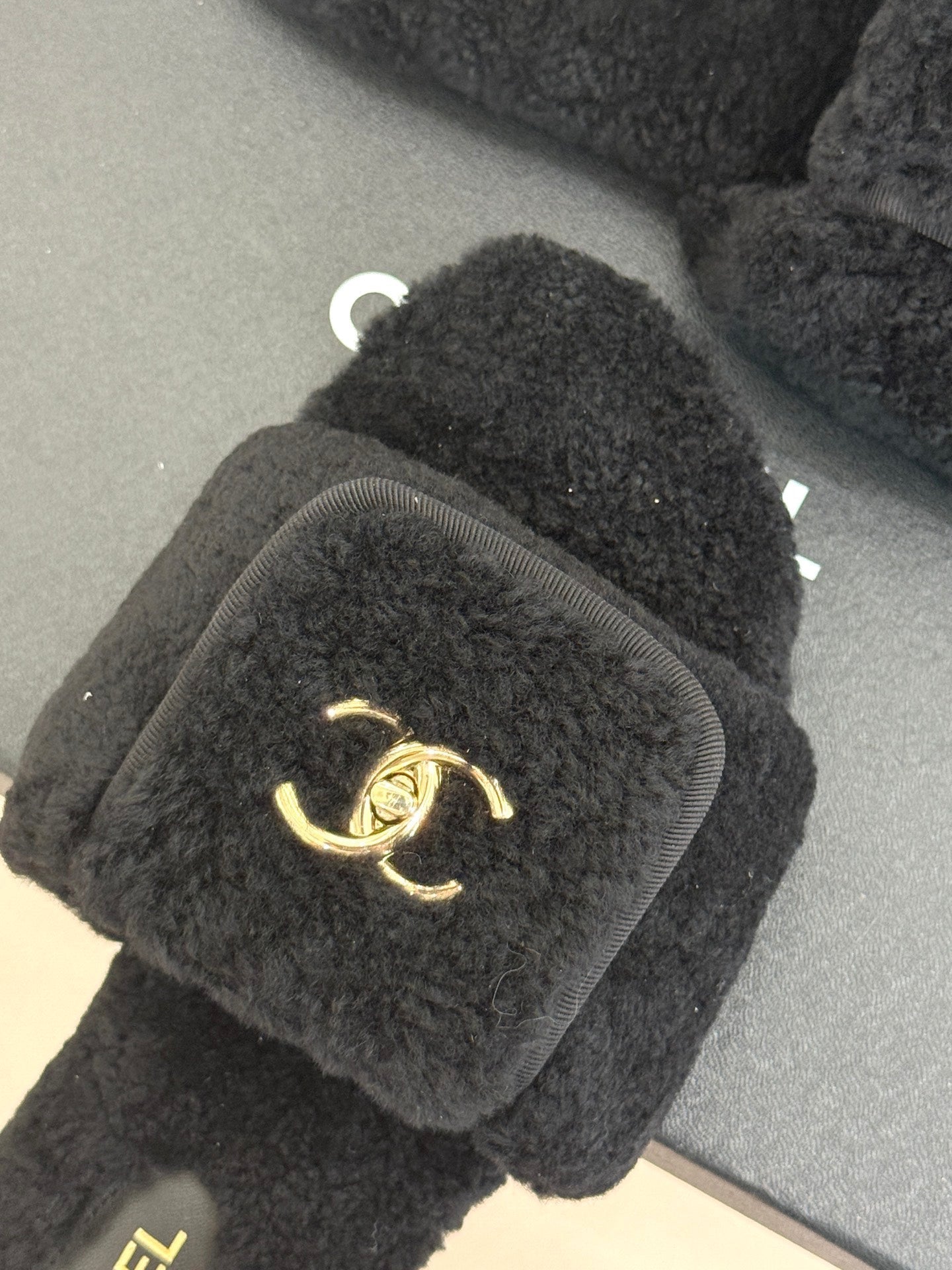 Chanel 25 Buckle Flip-up Thick-soled Slippers Black Wool 465380