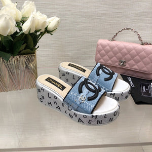 CC 25C Thick-Soled Slipper In Black Denim Space blue Fabric 213231
