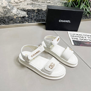 CC 25 Sandals Leather Chain 6cm White Lambskin 338655